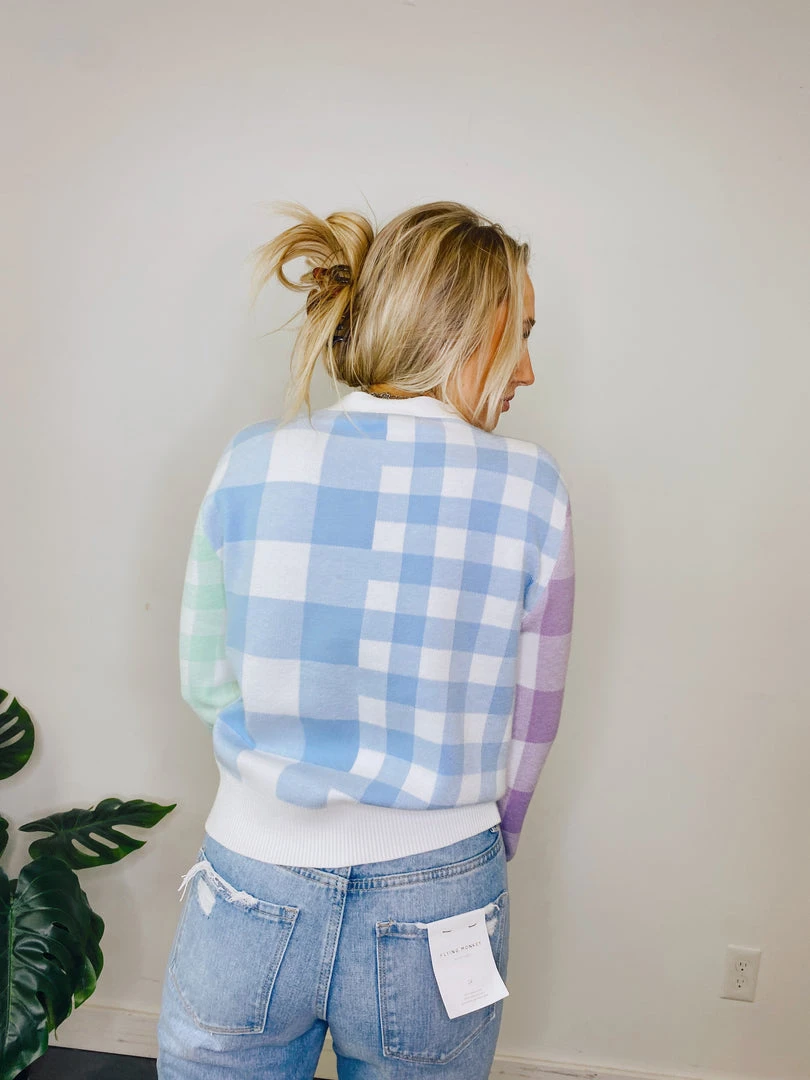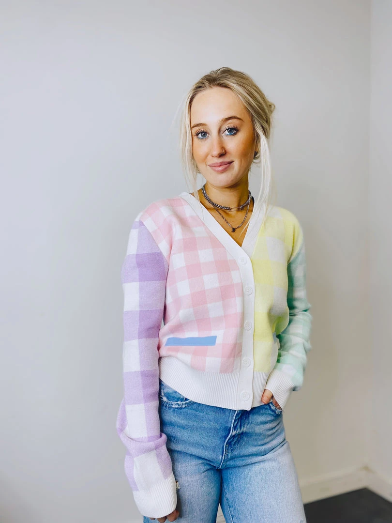 2.7 August Apparel Hannah Colorful Gingham Cardigan – Long Sleeve Women’s Sweater