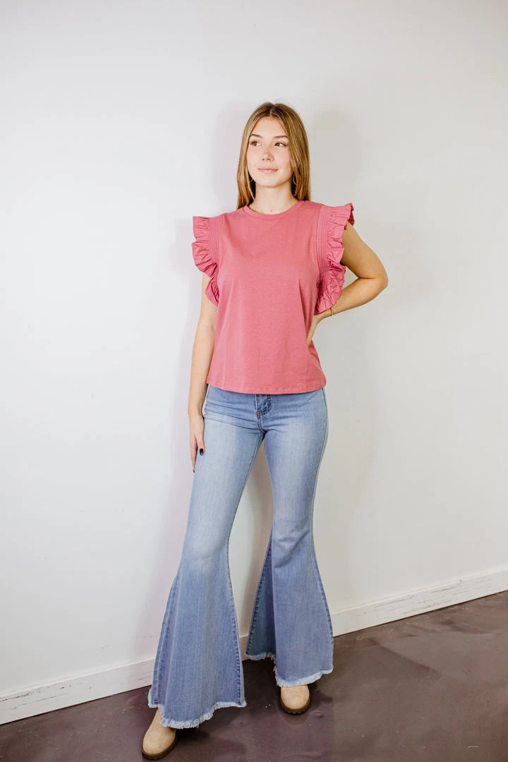2.7 August Apparel Keaton Ruffle Sleeve Top – Women’s Stylish Tops for Casual Wear