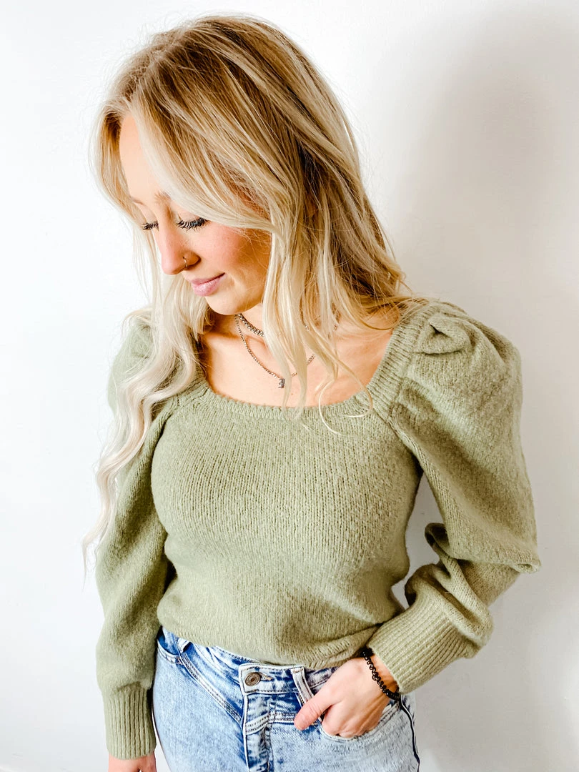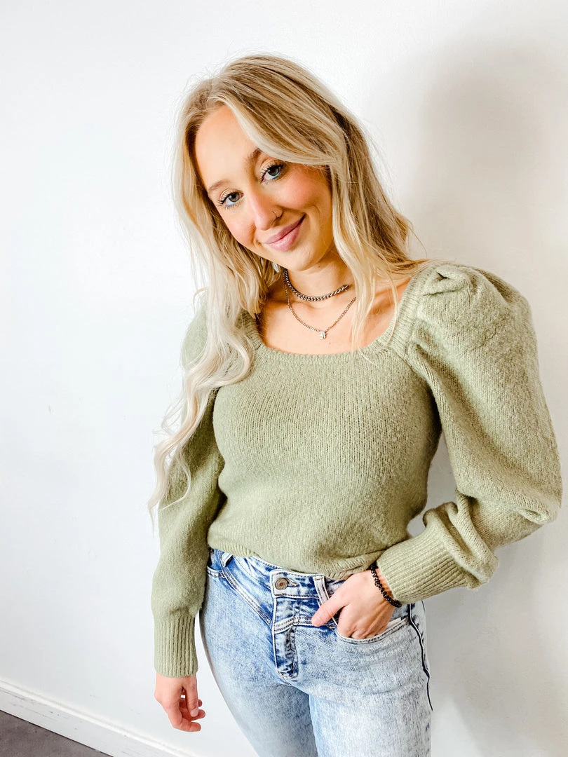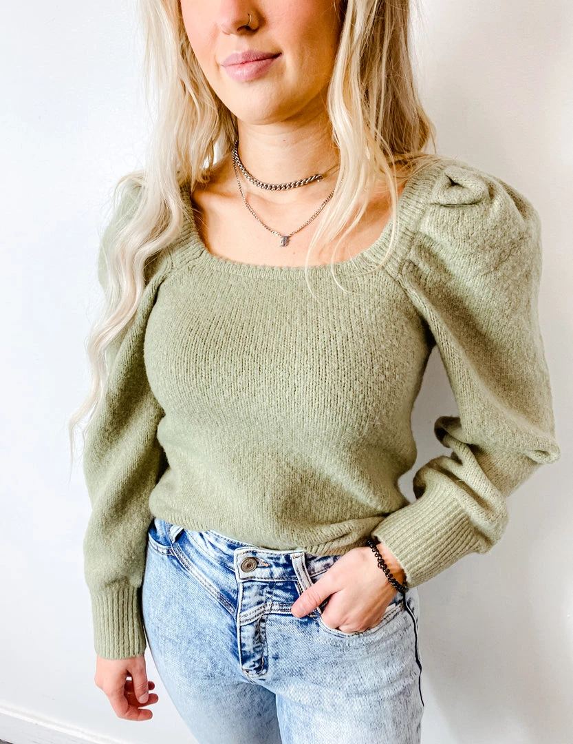 2.7 August Apparel Mary Kate Puff Sleeve Sweater – Women’s Long Sleeve Tops