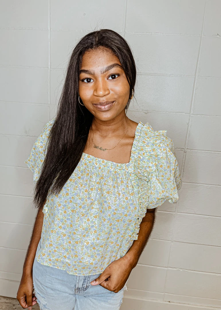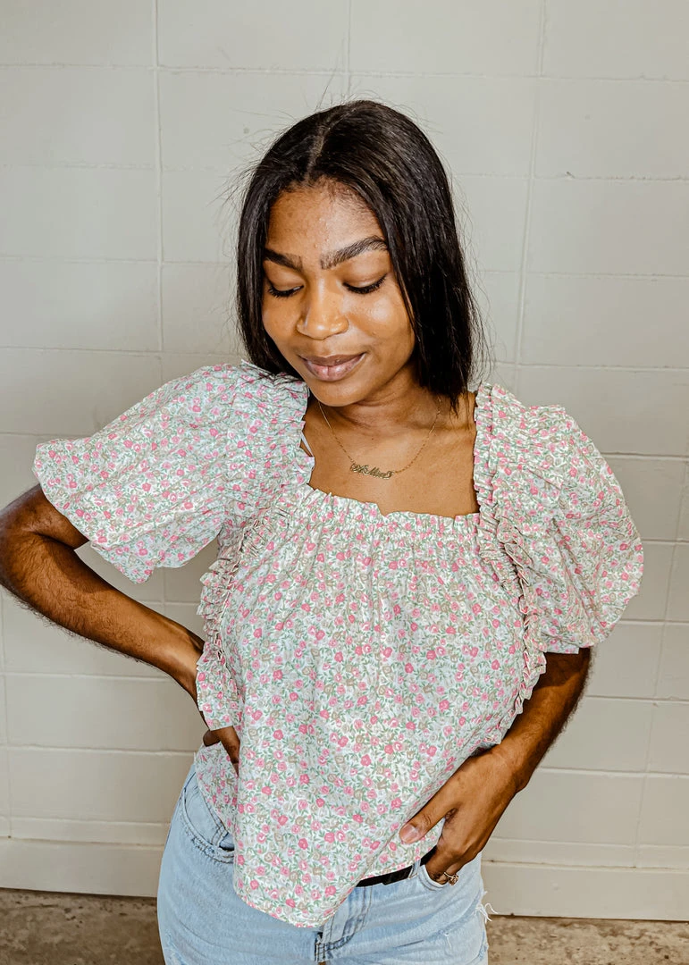 • Crafted from high-quality fabric, the Ramona Floral Ruffle Sleeve Top ensures a comfortable fit and long-lasting durability. The lightweight material makes it perfect for all-day wear.