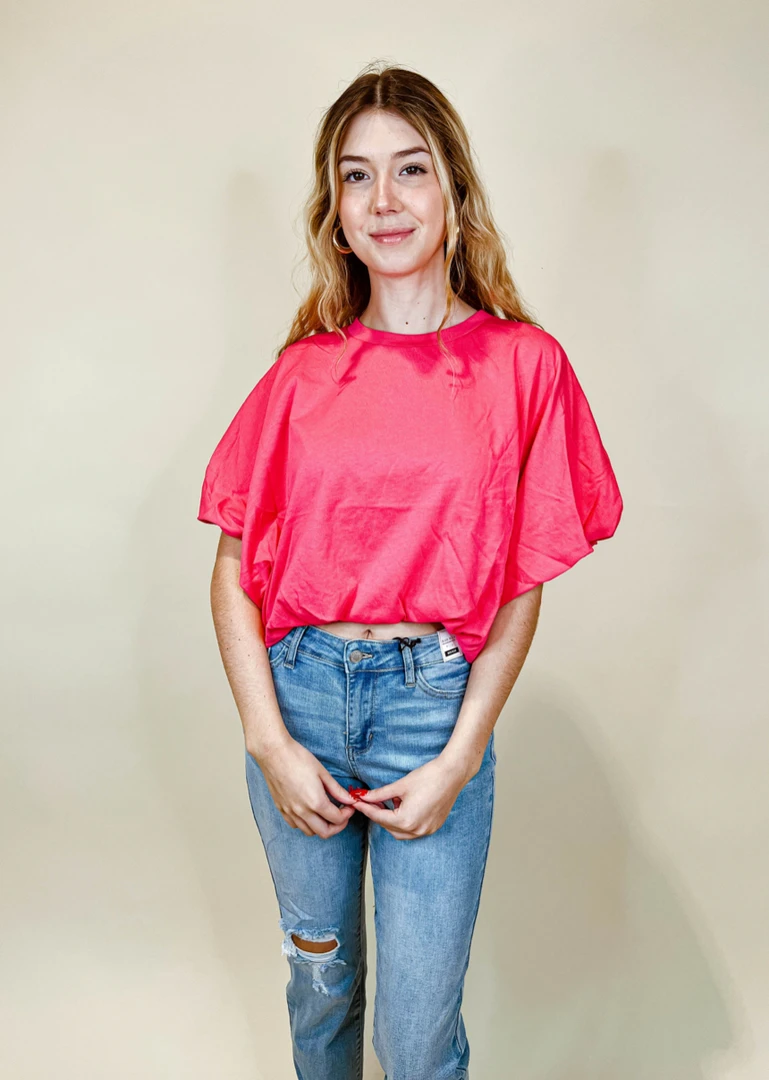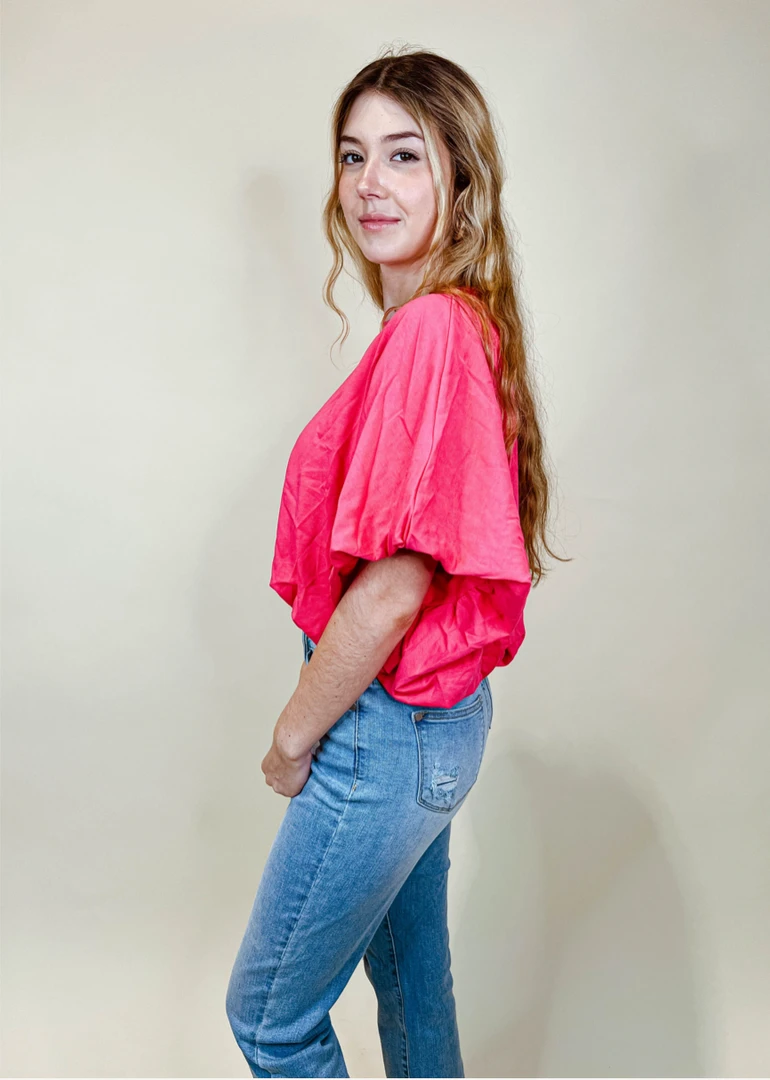 The Carter Balloon Top features a round neckline, short sleeves, a slightly cropped fit, and a super on trend balloon silhouette. Pair the Carter top with your favorite high waisted denim, colorful accessories, and sandals or sneakers to easily complete the cutest look!