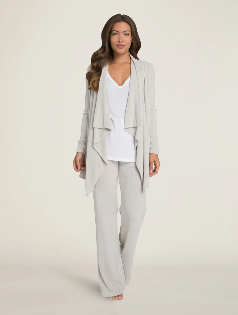 Look and feel so relaxed in this Barefoot Dreams cardigan! The Barefoot Dreams CozyChic Ultra Lite cardigan is so soft and it features a high low hemline, wrap style font, and pockets at the side.Â