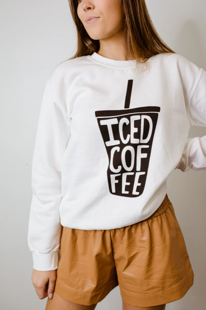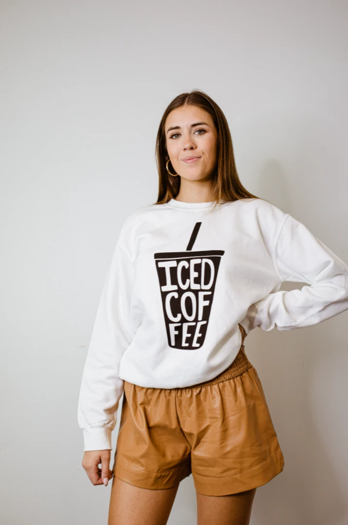 - Elevate your casual style with the Benie Iced Coffee Graphic Sweatshirt Tops. Featuring a trendy iced coffee graphic design, this sweatshirt is perfect for coffee lovers and fashion enthusiasts alike.