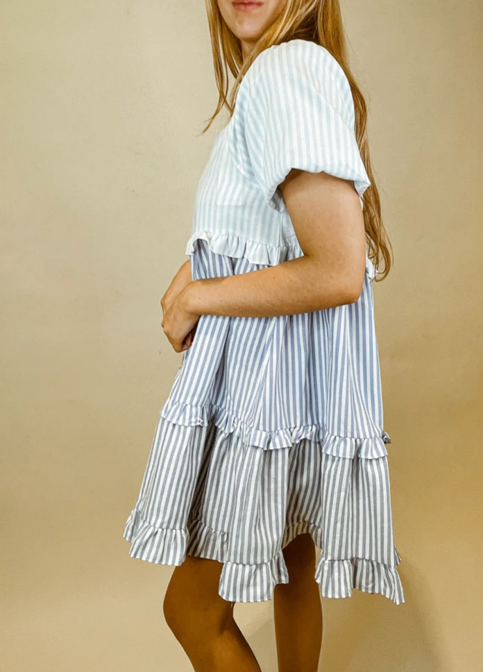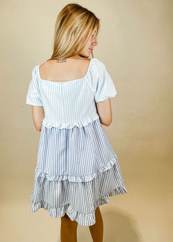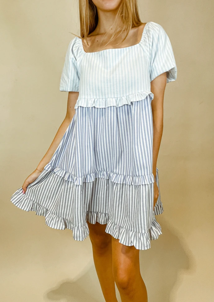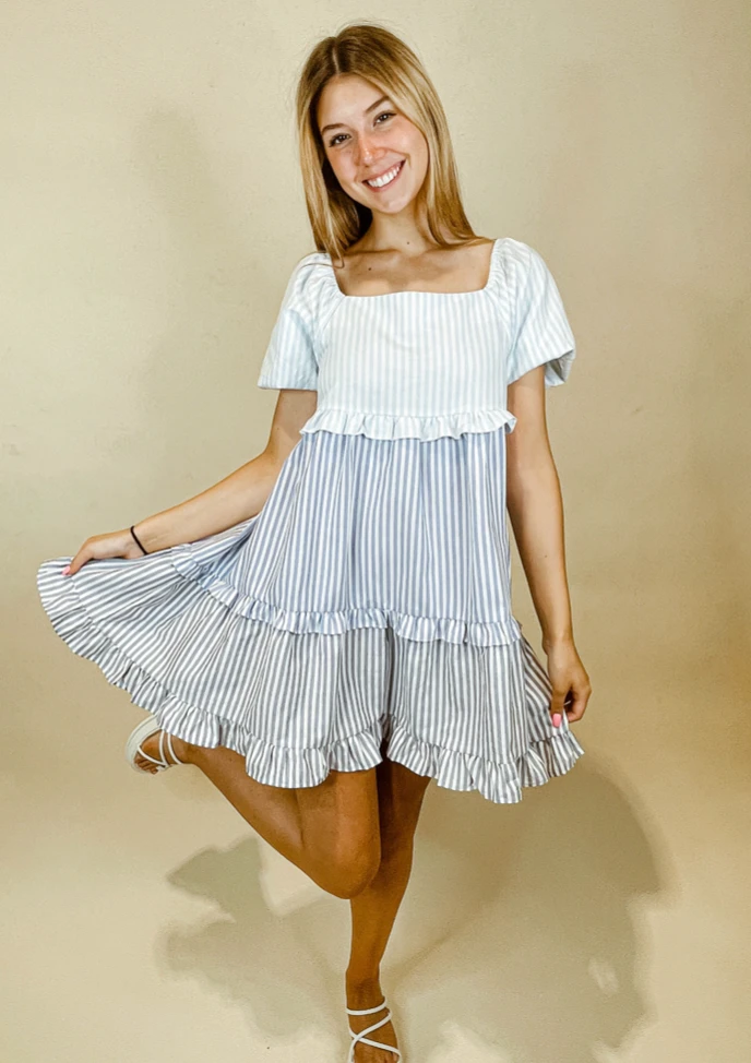 The Katie Striped Ruffle Dress features a flattering square neckline, short puff sleeves, a multi shade striped pattern, and a flowy tiered ruffle silhouette. Pair the Katie dress with your favorite summer accessories and sandals (or white sneakers) to complete a look that can easily be dressed up or down!