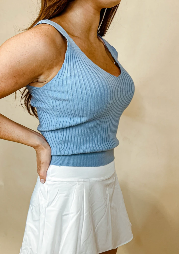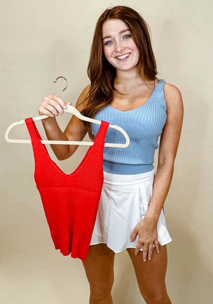 We will be reaching for the Michelle Knit Tank Top over and over again this summer! The Michelle tank top features a v neckline, slightly cropped silhouette, and a super comfortable fit. The Michelle tank top is a lightweight, soft ribbed knit that is perfect to pair with a pair of denim shorts!Â