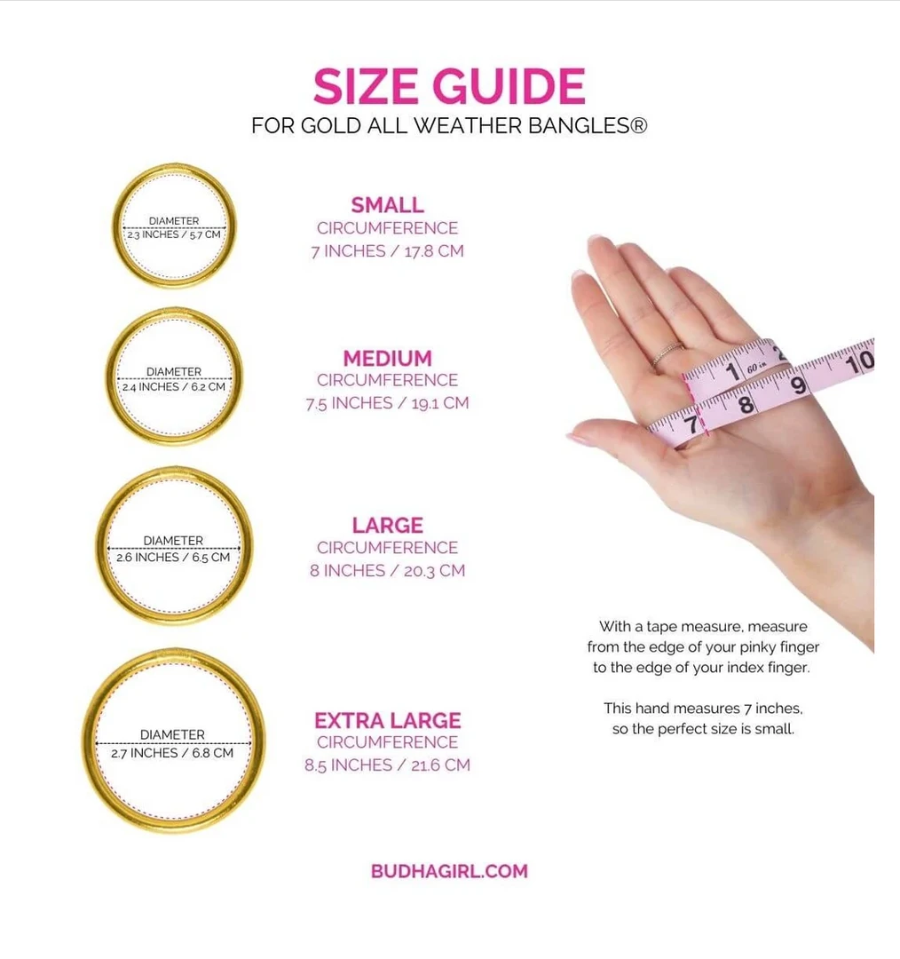 - Elevate your style with the Buddha Girl Gold All Weather Bangles. These elegant bangles are designed to complement any outfit, making them perfect for casual wear, office attire, or special occasions.
