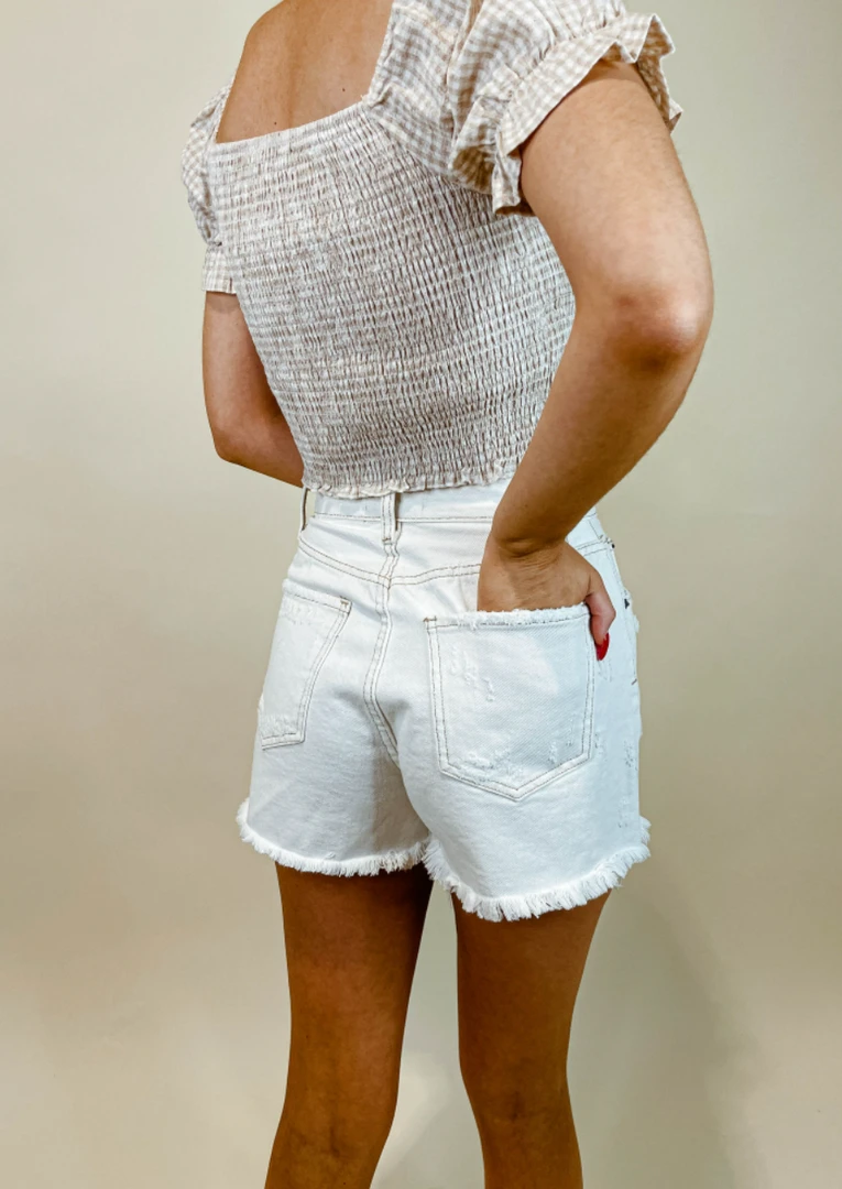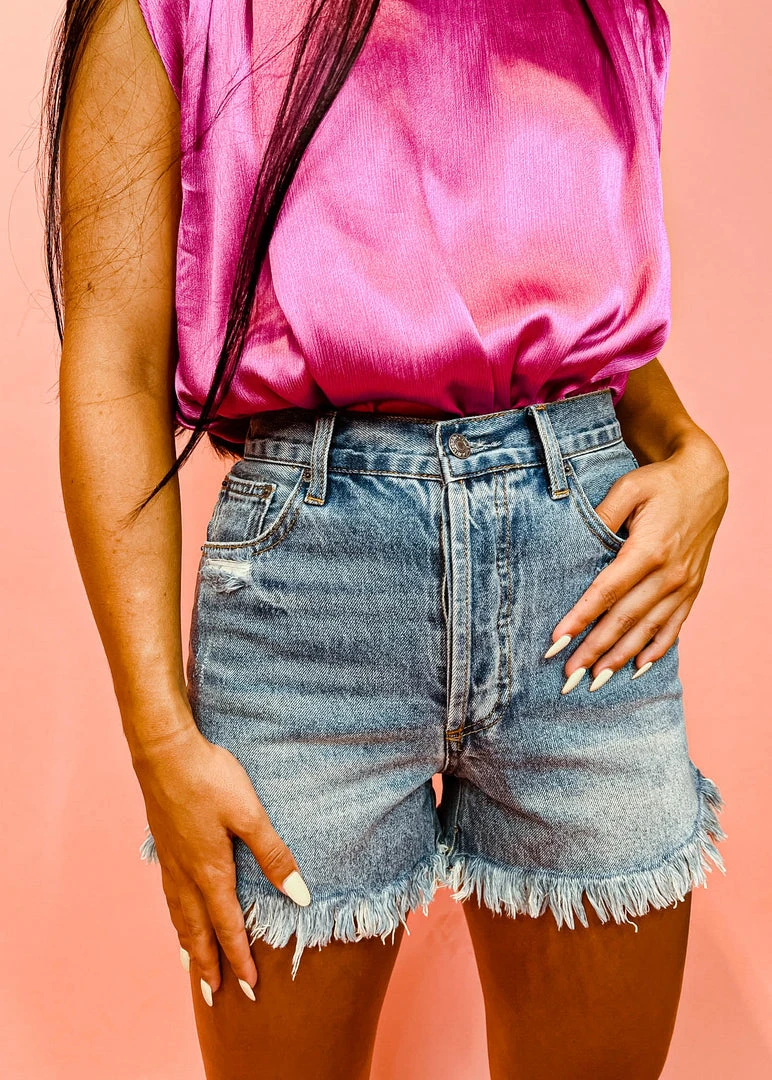 You can never have too many denim shorts in your summer wardrobe! The Casey jean shorts feature a flattering high rise waist, light distressing, and a raw cut hem. Pair them with any top in your closet!