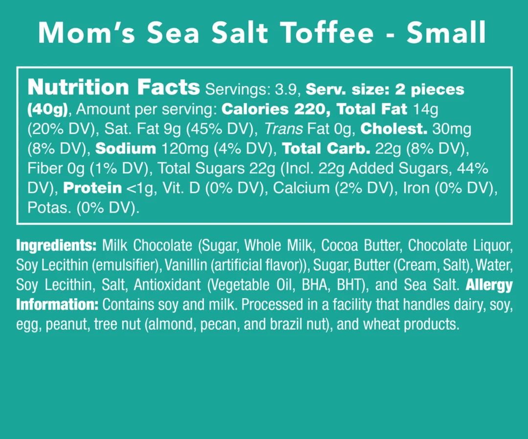 - Indulge in the rich, buttery flavor of Candy Club Mom’s Sea Salt Toffee, a gourmet treat perfect for any occasion. Each bite combines the perfect balance of sweet and salty, making it a favorite for toffee lovers.