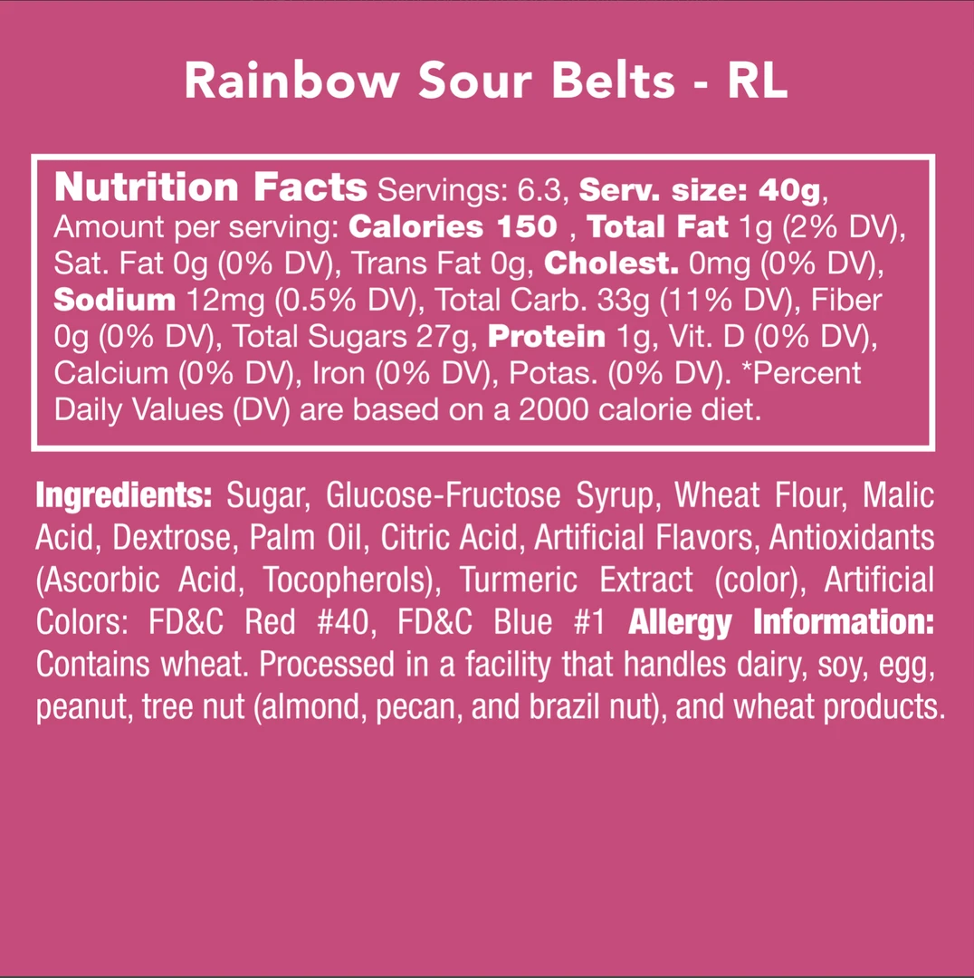 - Candy Club Rainbow Sour Belts are made with high-quality ingredients, ensuring a premium candy experience. Each pack is carefully crafted to deliver consistent flavor and texture.