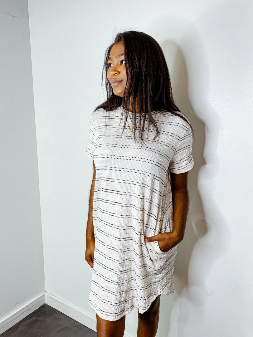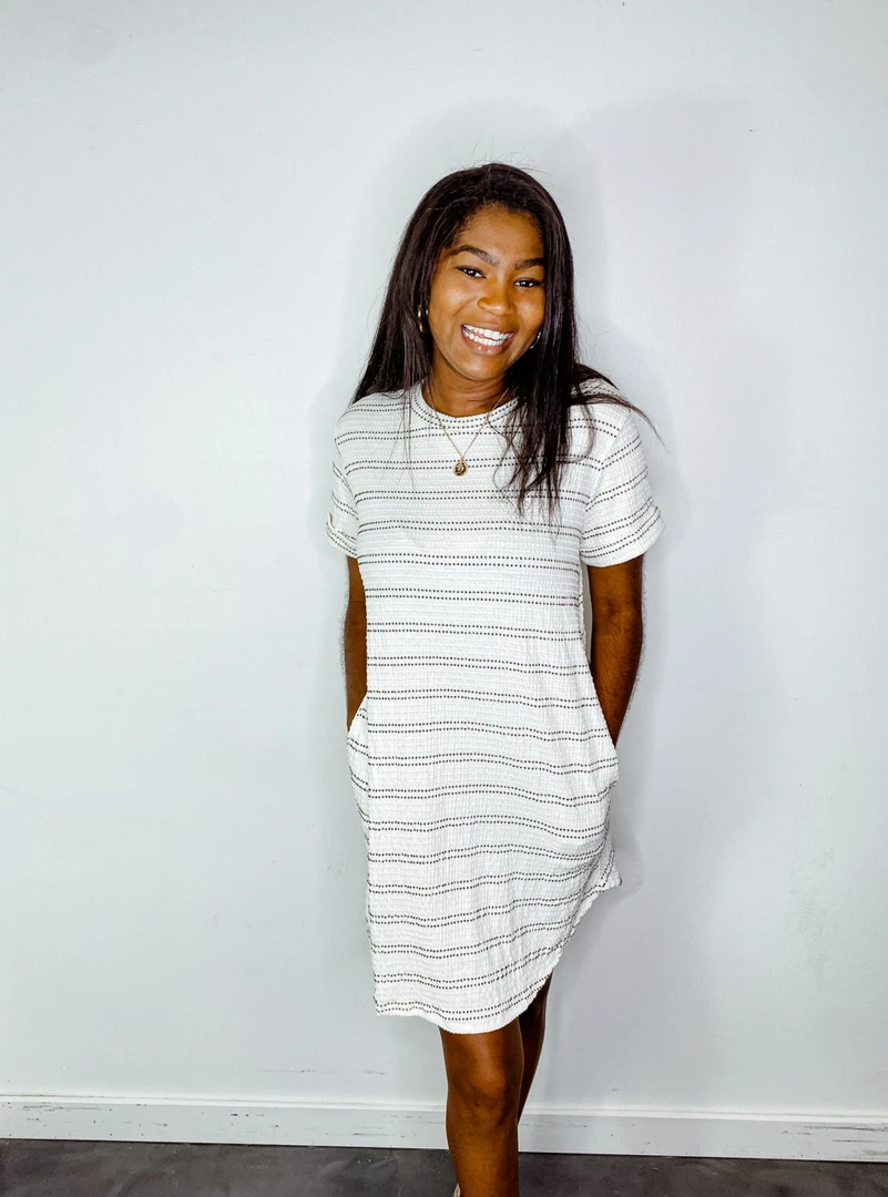 - The Cherish Christian Striped Tee Shirt Dress is a versatile and stylish addition to your wardrobe. Featuring a classic striped design, this dress is perfect for casual outings, church gatherings, or everyday wear.