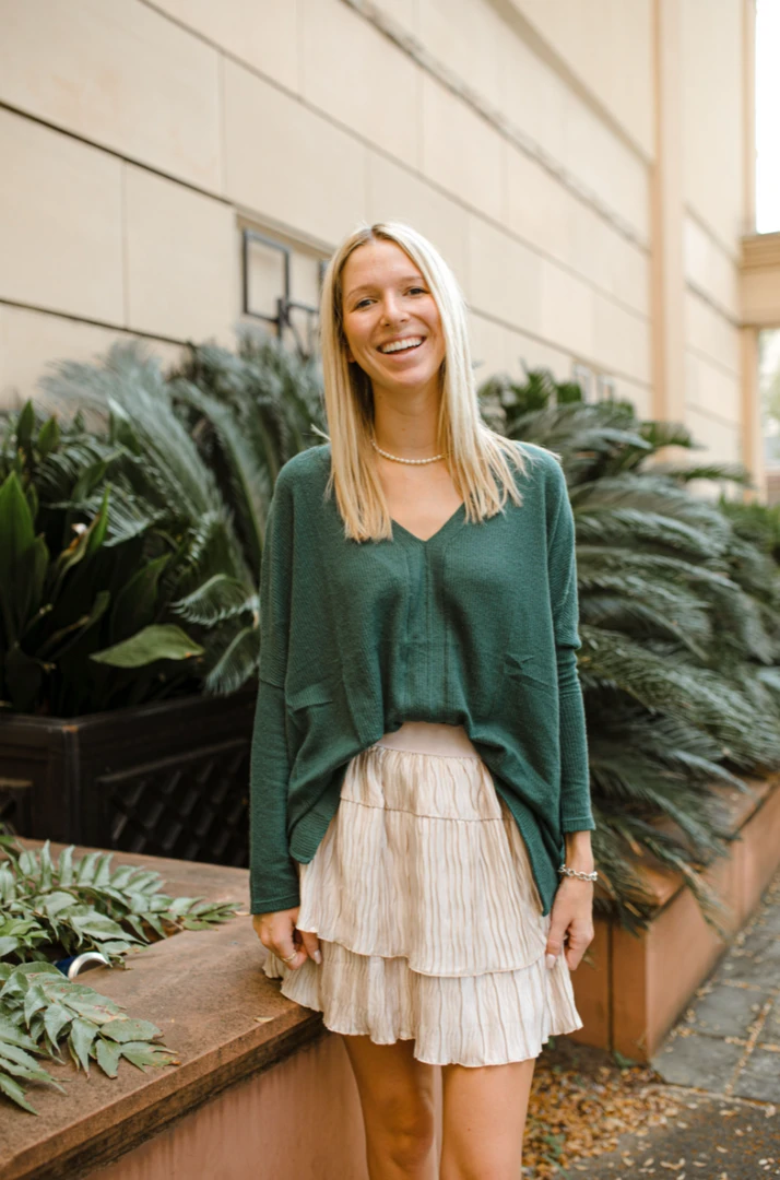 Cherish Jess Knit V Neck Top – Women’s Long Sleeve Casual Tops