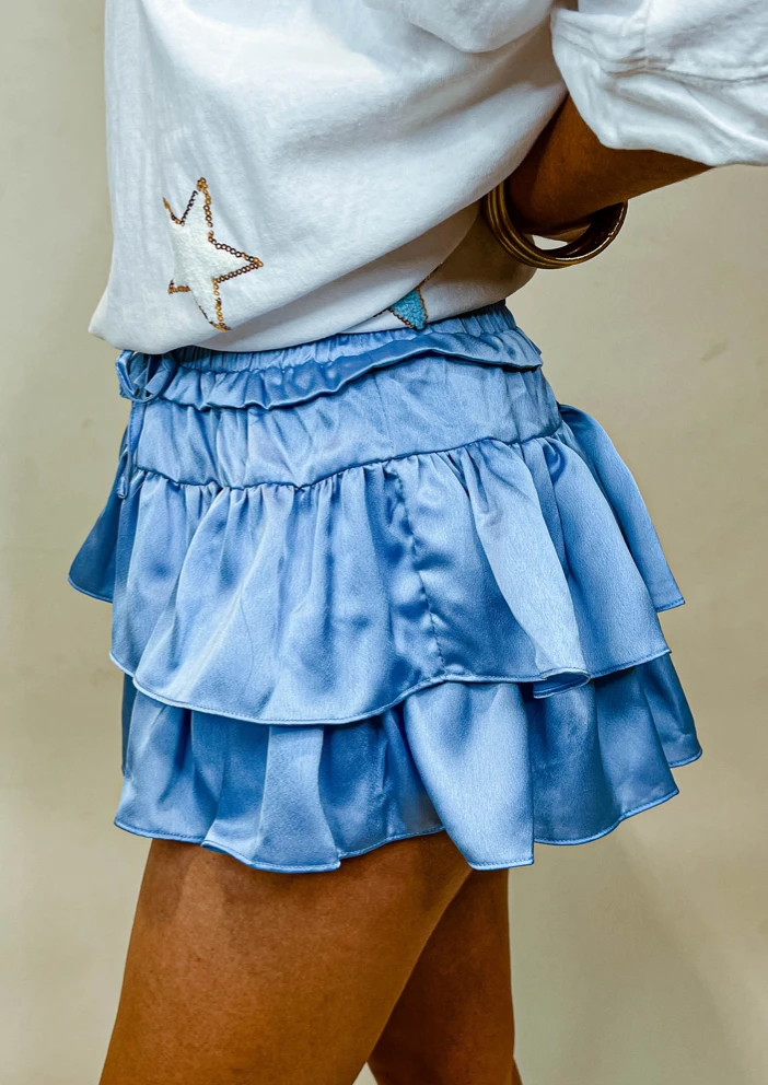 This ruffle skort is a going to be your new go to this summer and the #Gameday Skirt of the season! The Briar skort features a tie at the waist for an adjustable fit, shorts underneath, and a flowy ruffled look. Pair the Briar skort with a graphic tee and sneakers or a cute top and fun accessories for a more dressed up look!