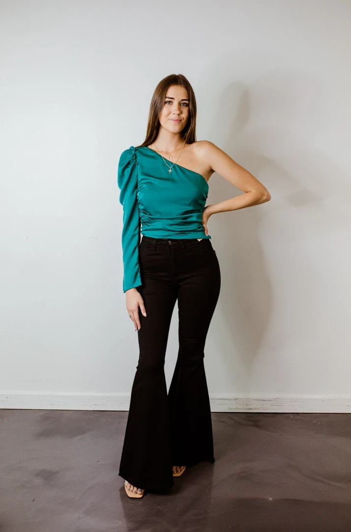 - Elevate your evening wardrobe with the Do + Be Ellie Satin One Shoulder Top. This elegant blouse features a luxurious satin finish and a unique one-shoulder design, perfect for making a statement at any event.