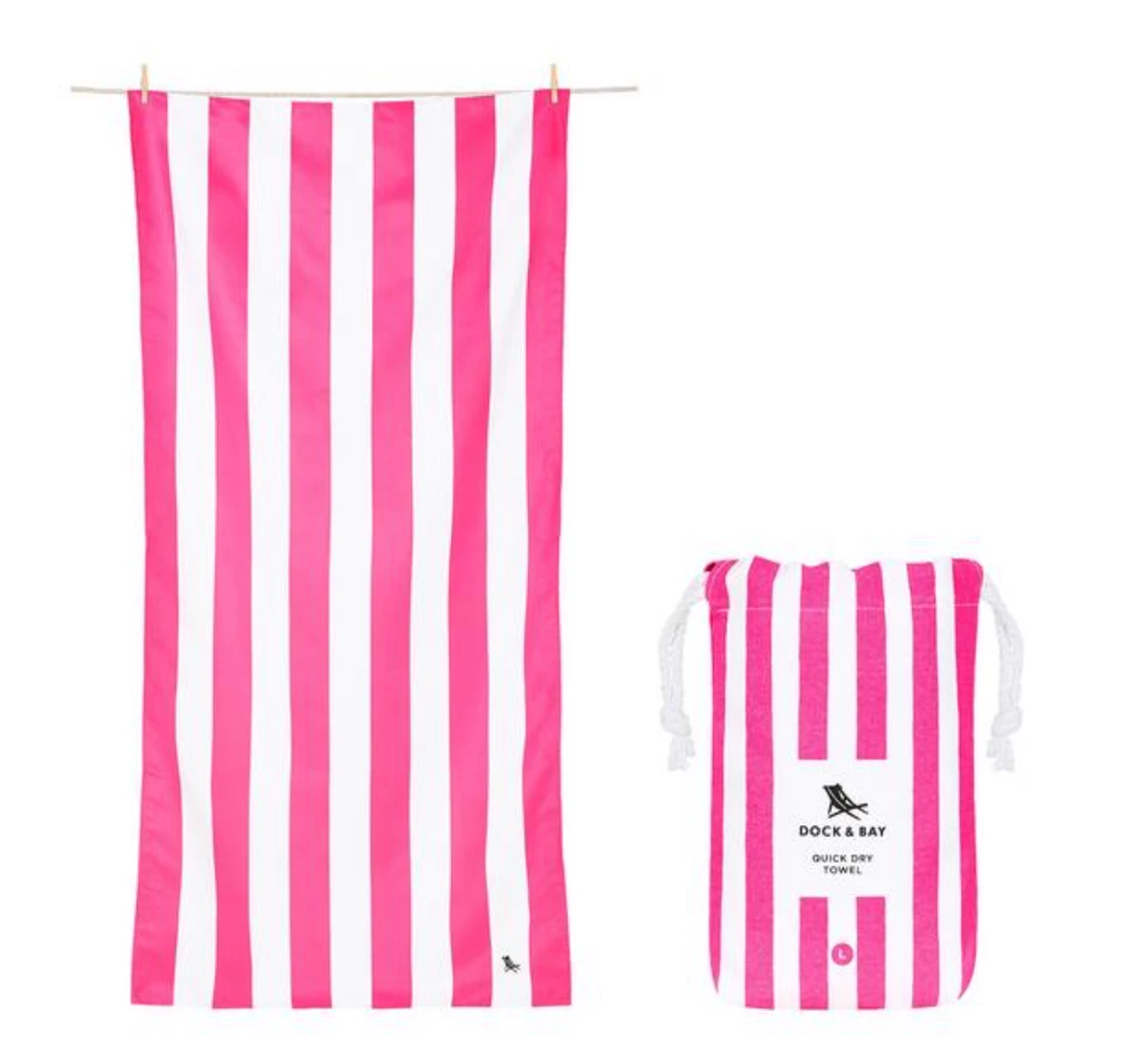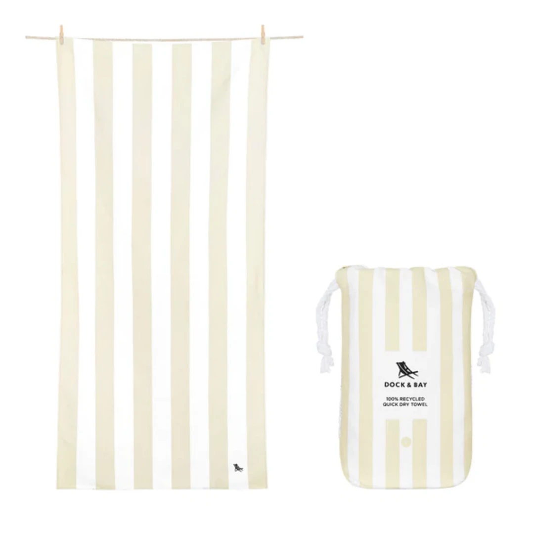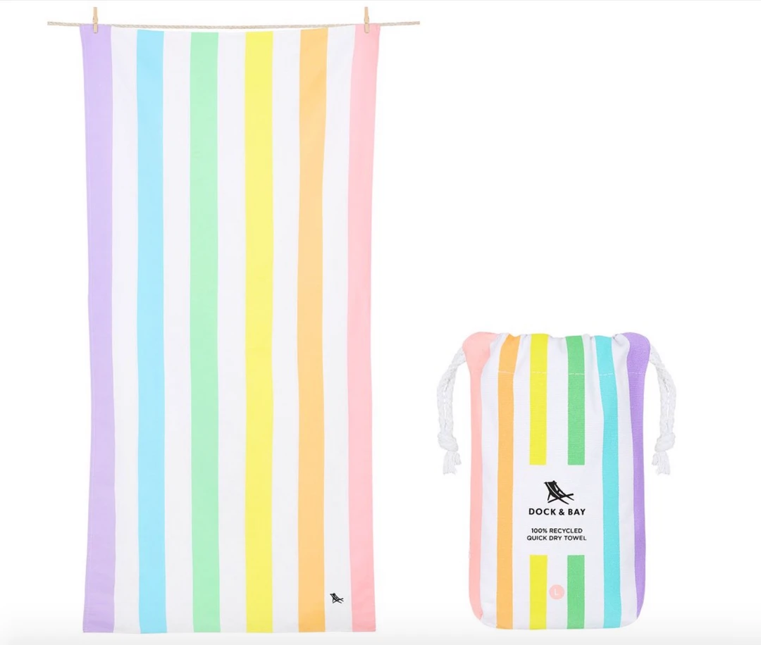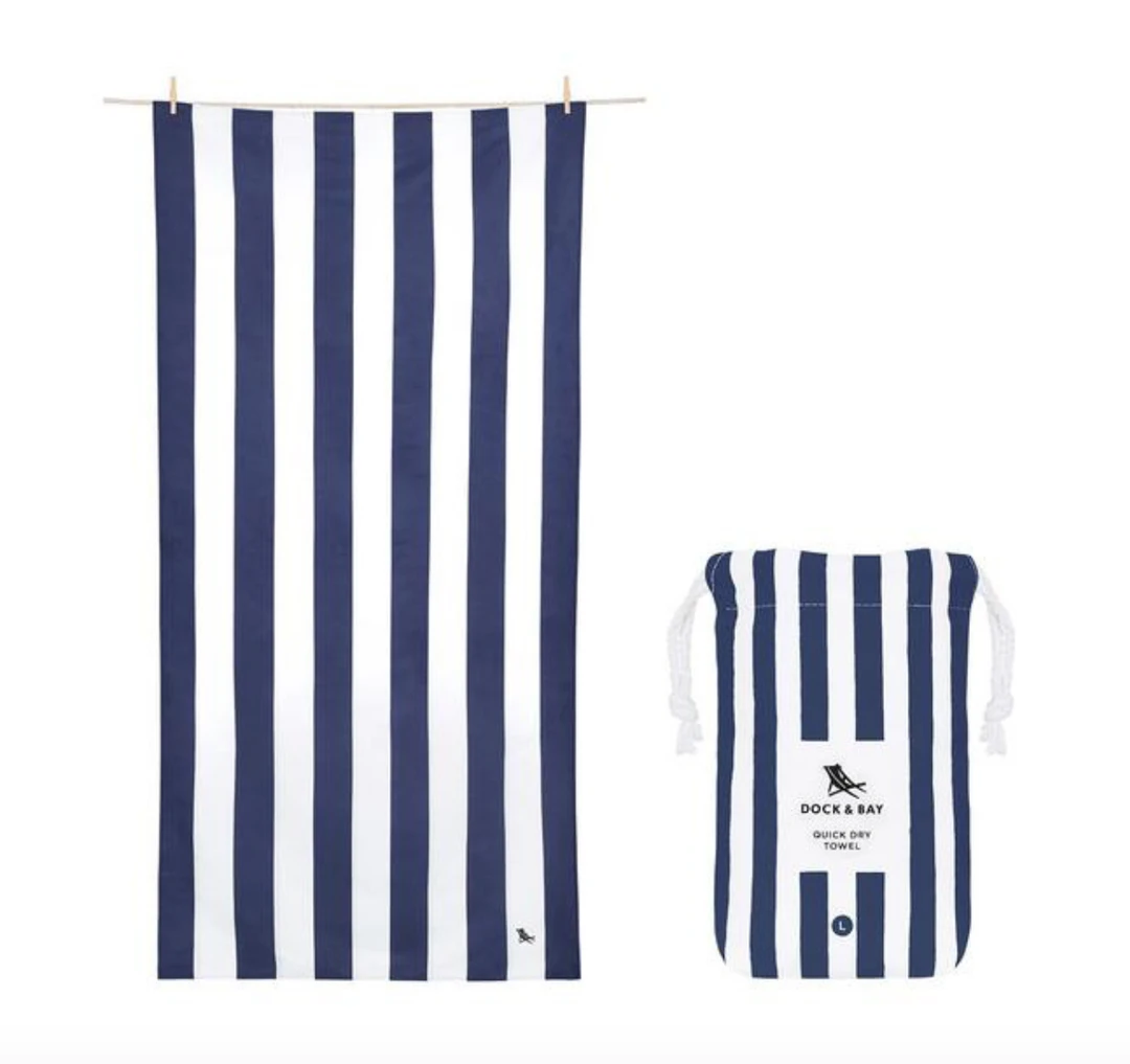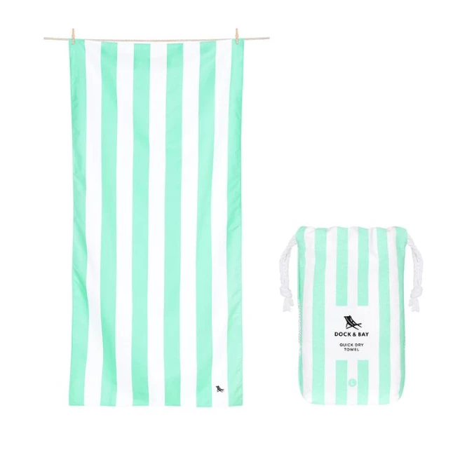 - Experience ultimate comfort with the Dock & Bay Quick Dry Beach Towel. Made from premium microfiber, this towel is ultra-absorbent, dries 3x faster than cotton, and is perfect for beach trips, gym sessions, or poolside lounging.