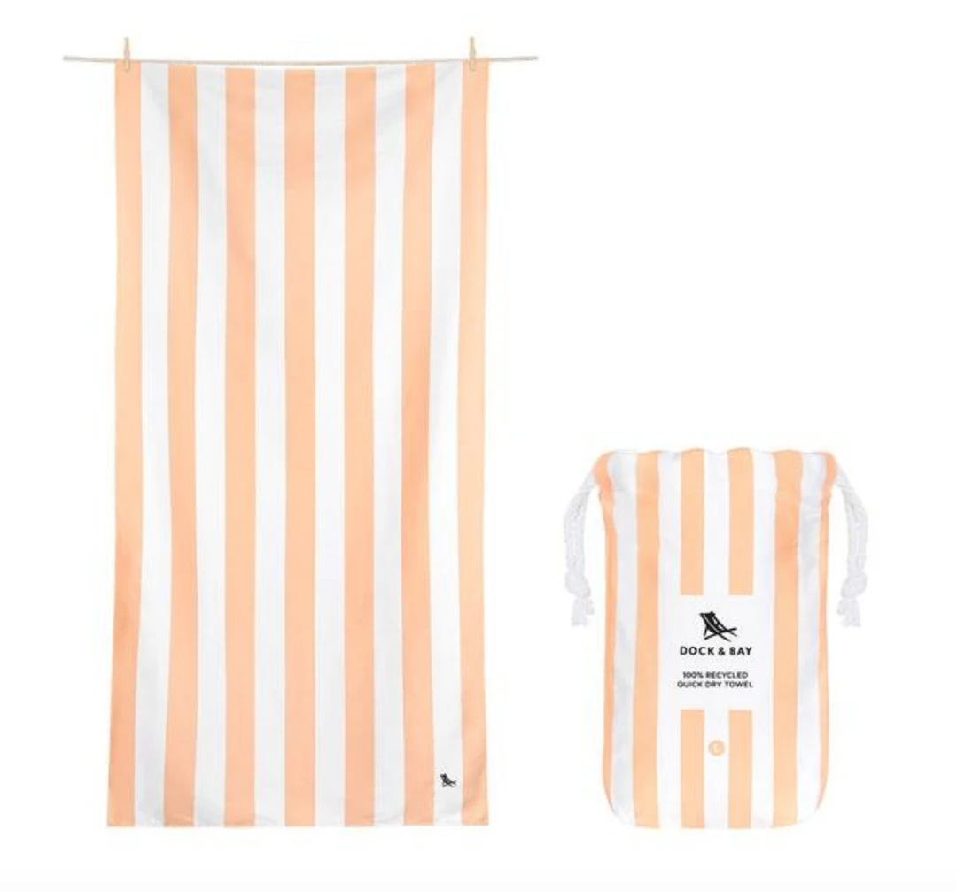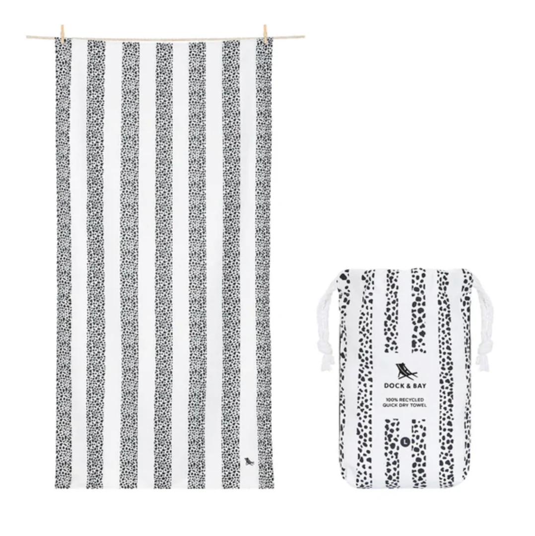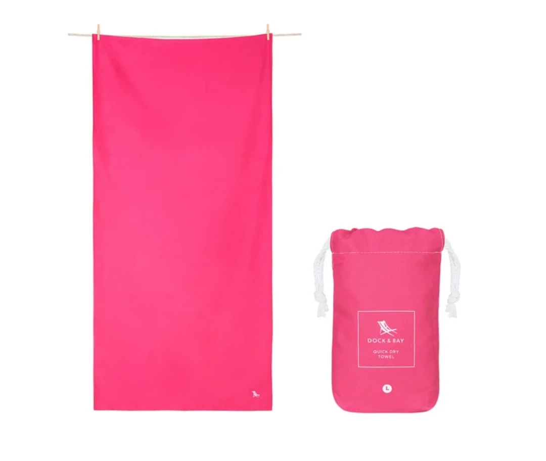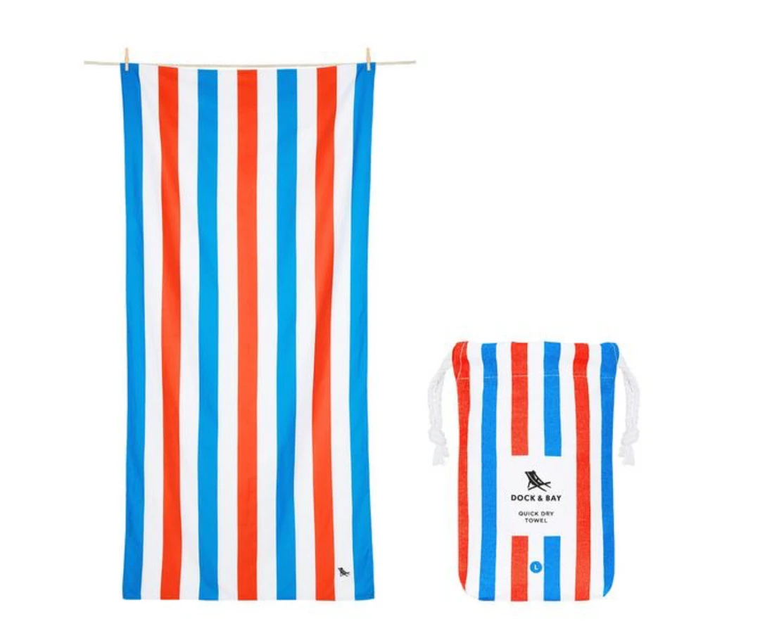 - Experience ultimate comfort with the Dock & Bay Quick Dry Beach Towel. Made from premium microfiber, this towel is ultra-absorbent, dries 3x faster than cotton, and is perfect for beach trips, gym sessions, or poolside lounging.