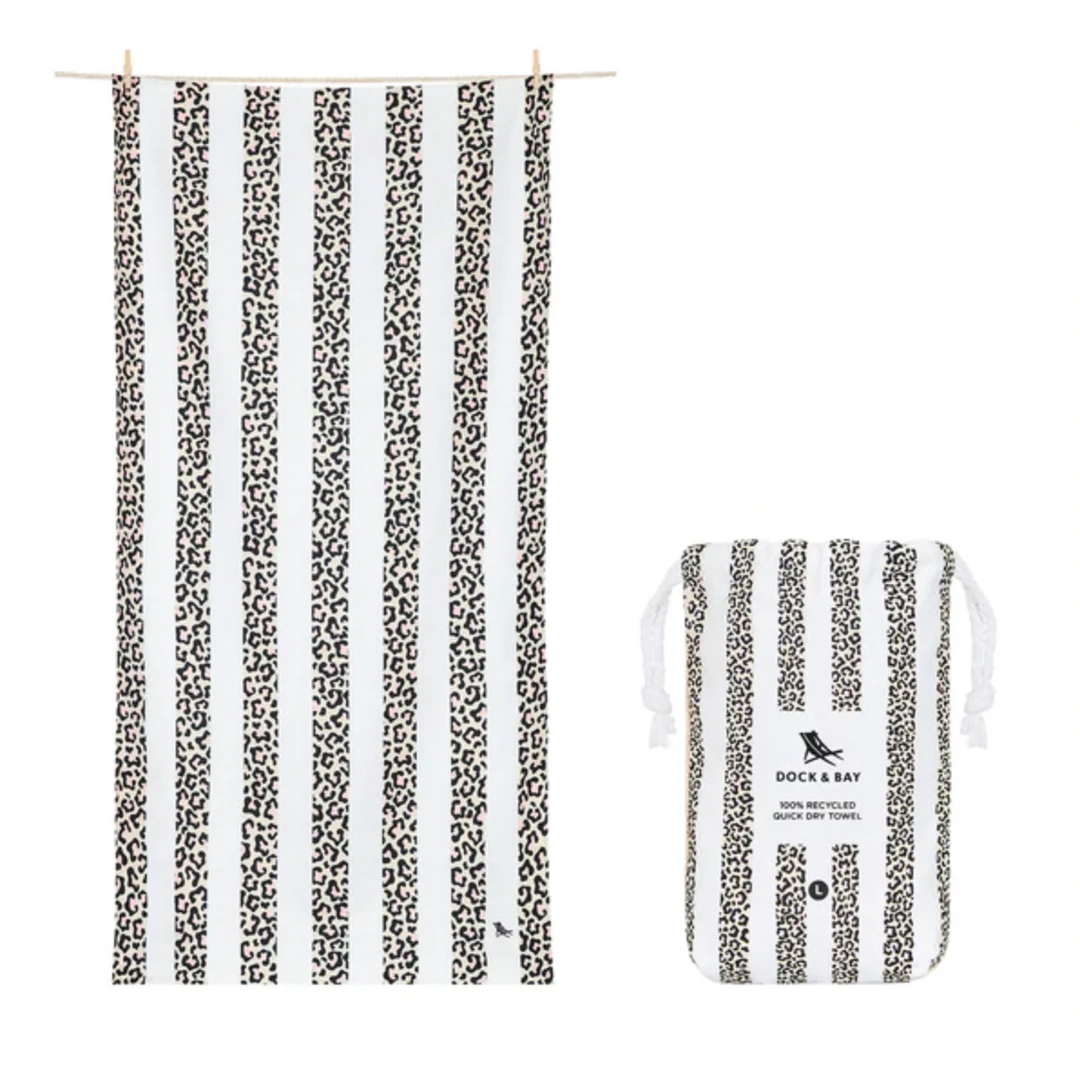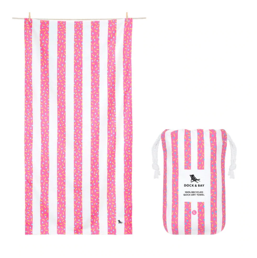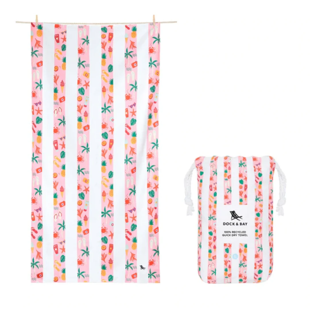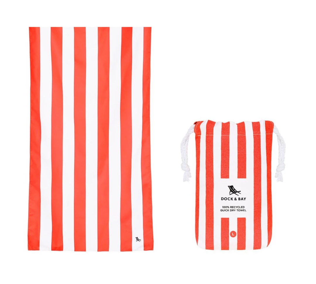 - Experience ultimate comfort with the Dock & Bay Quick Dry Beach Towel. Made from premium microfiber, this towel is ultra-absorbent, dries 3x faster than cotton, and is perfect for beach trips, gym sessions, or poolside lounging.