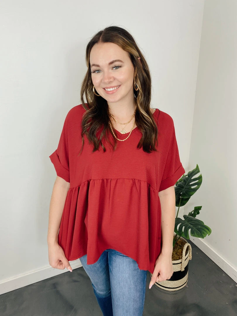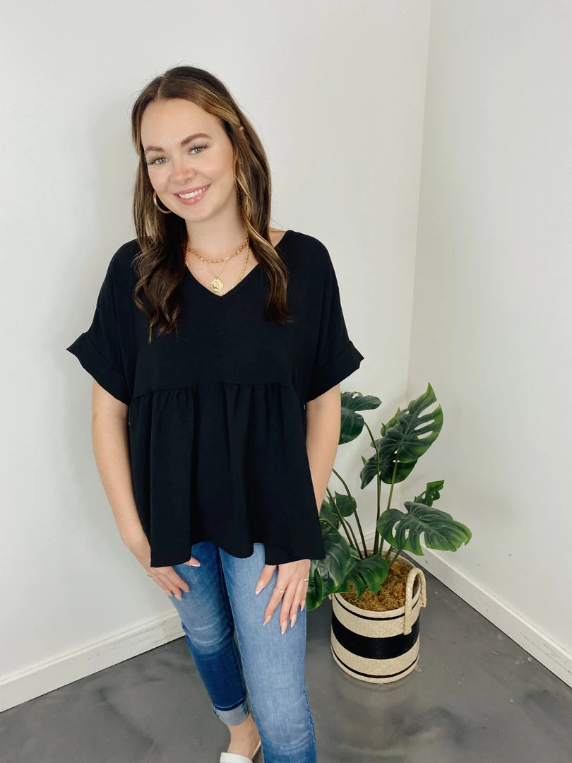 - Available in a range of beautiful colors, the Entro Bailie Babydoll Top is designed to suit your personal style. Whether you’re dressing up or down, this top is a versatile addition to your closet.