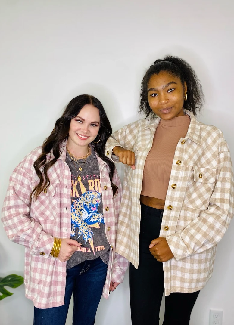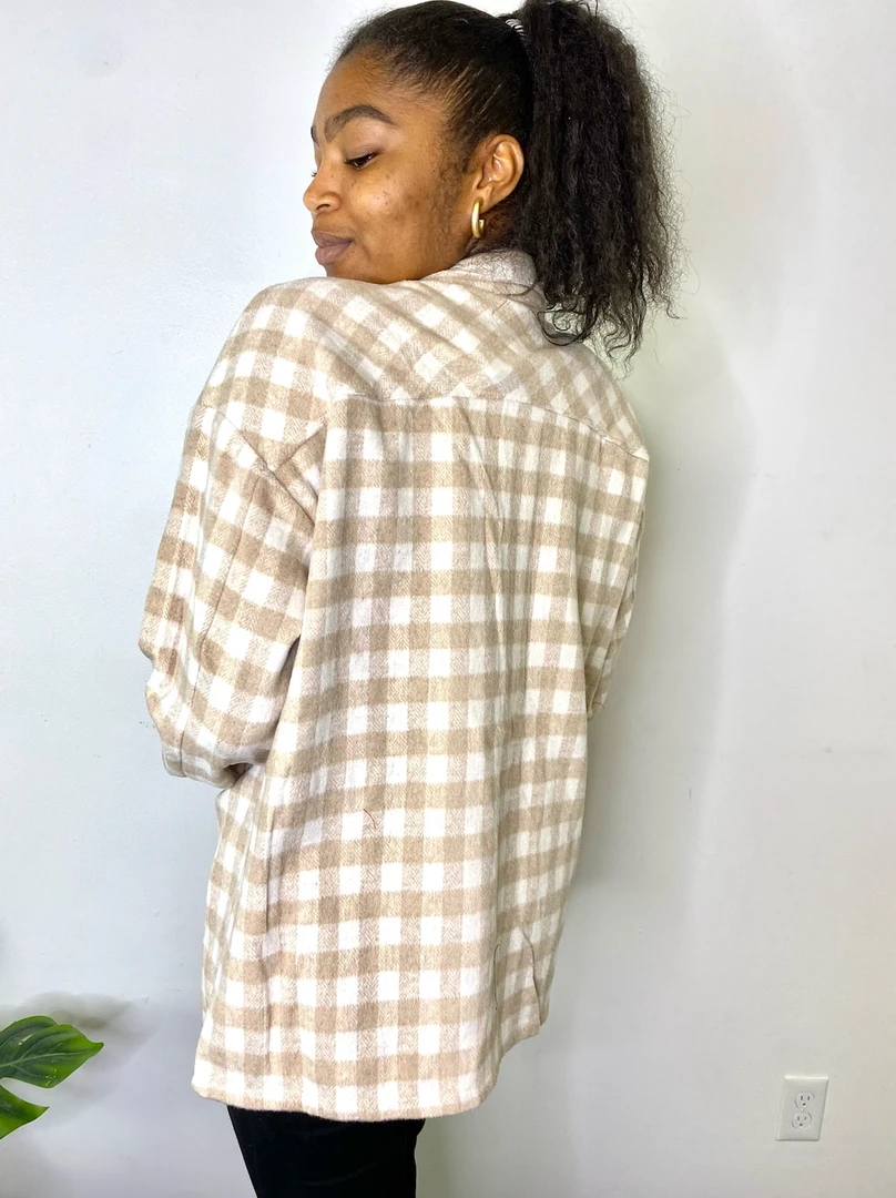 - Crafted from high-quality materials, this gingham jacket offers a comfortable fit and a timeless design, making it a must-have for any fashion-forward individual.