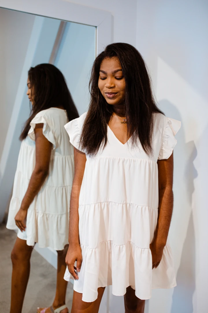 - Available in a variety of sizes and colors, the Mae Flutter Sleeve Dress is designed to flatter all body types, offering a perfect fit for every woman.