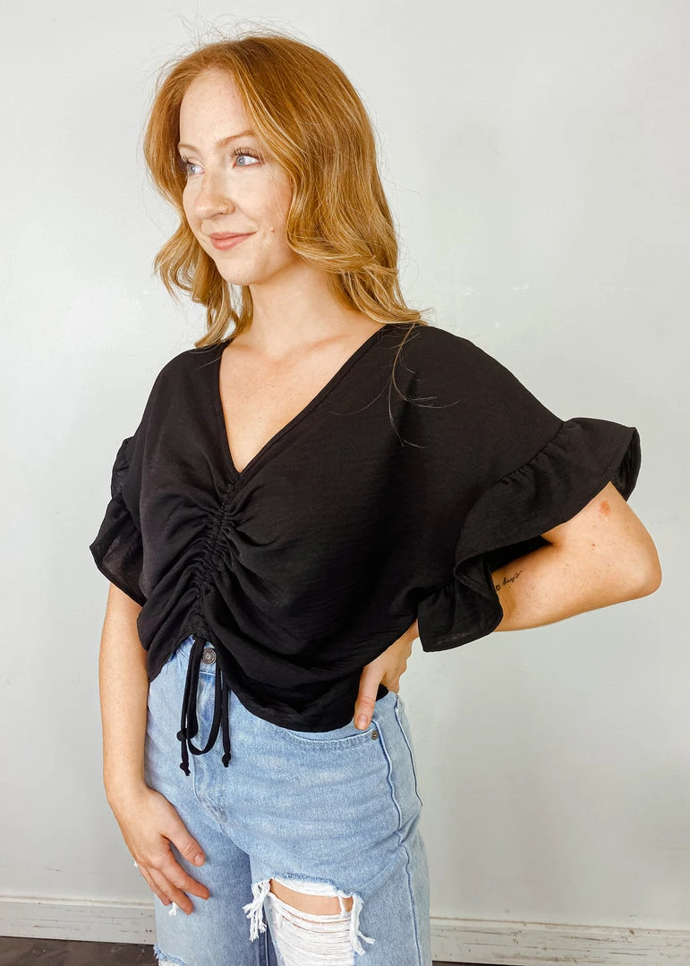 Entro Meagan Ruffle Ruched Top – Stylish Women’s Tops for Casual & Party Wear