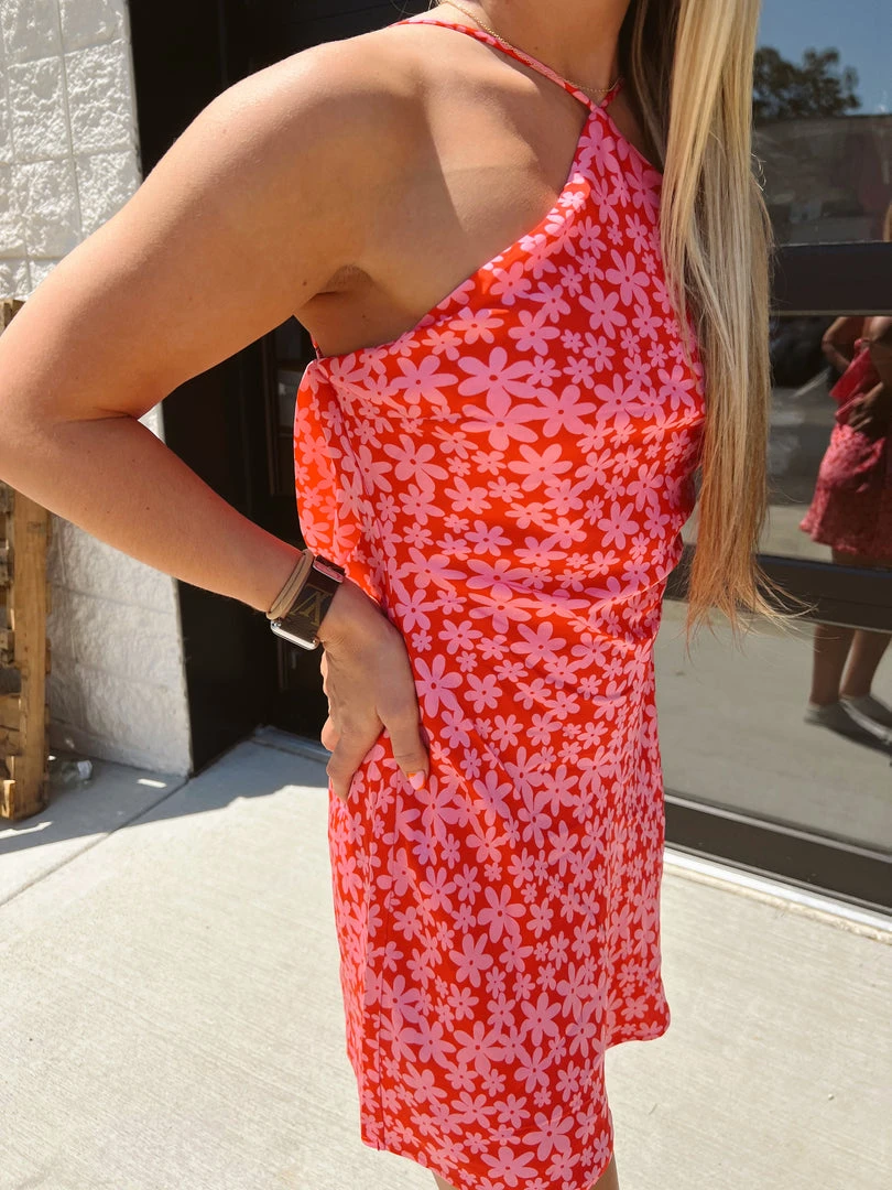 The Evelyn Floral Halter Dress is definitely a Swank favorite for this summer! The Evelyn dress features an always flattering, on trend halter neckline, open back with adjustable ties and a cowl silhouette, and an all over floral pattern. The Evelyn dress is fully lined.Â
