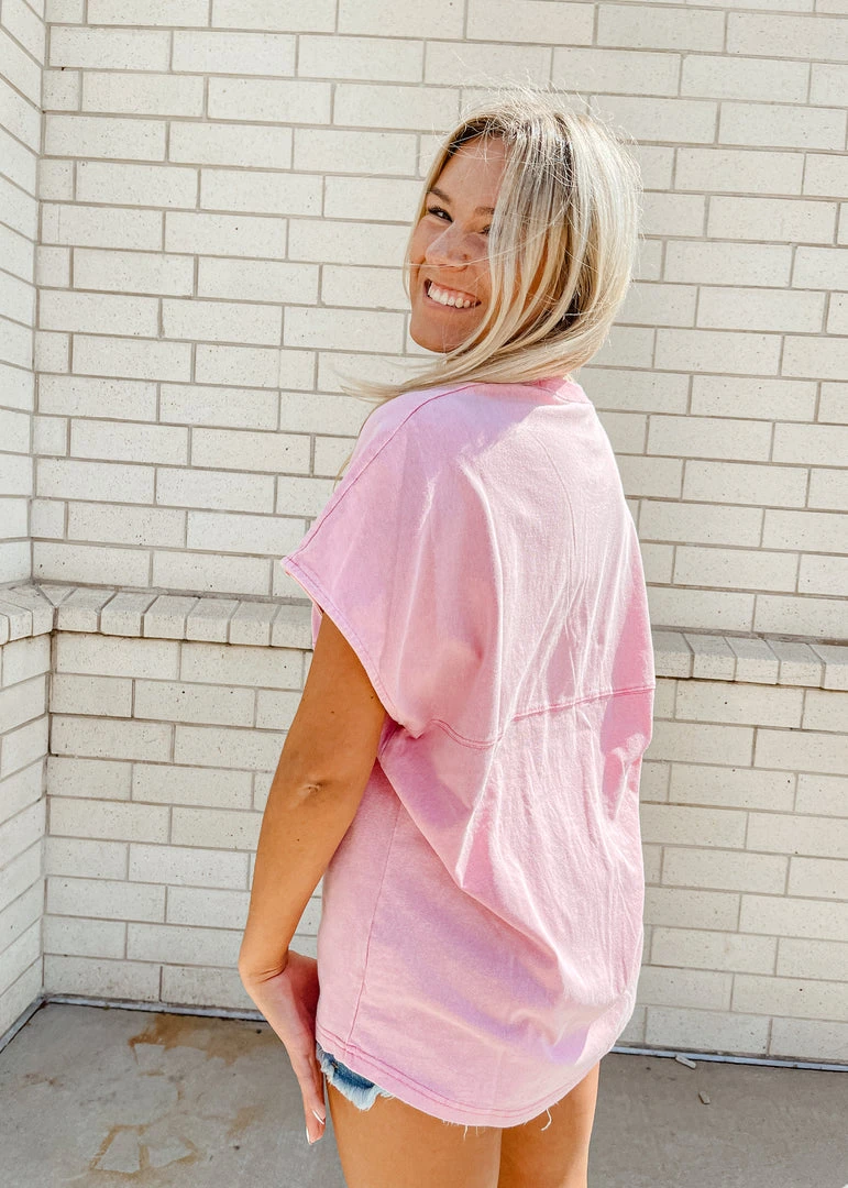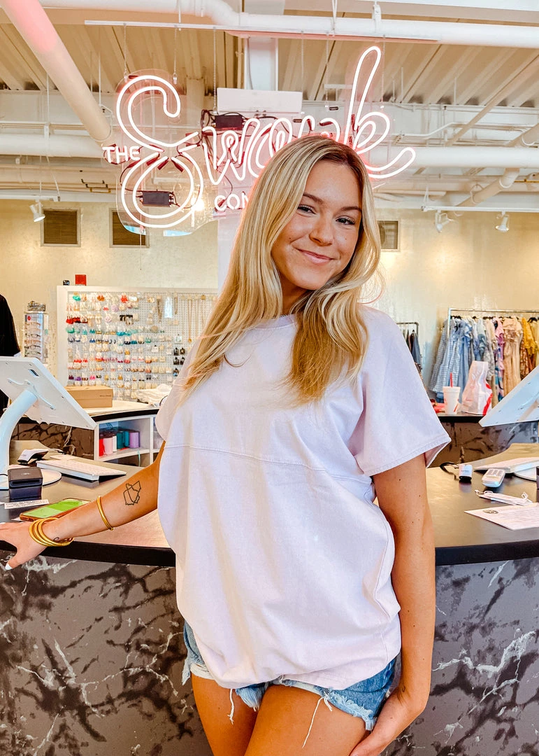 It’s going to be so hard trying not to wear the Chloe top everyday this summer! This must have top comes in three vibrant, summer inspired colors and we can’t choose which one we love more! The Chloe top features short sleeves, a center seam detail, and a slightly oversized fit. Easily dress this top up or down!Â