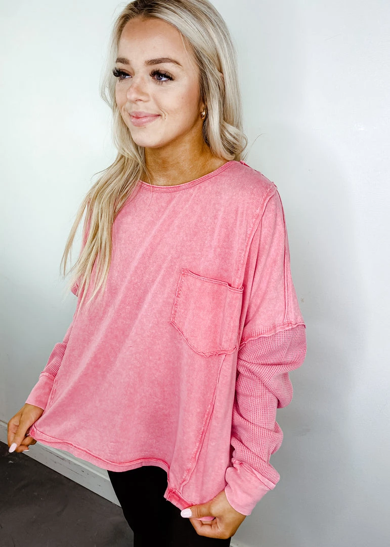Fantastic Fawn Chrissy Mineral Wash Knit Top – Soft Long Sleeve Women’s Top | Casual & Comfortable