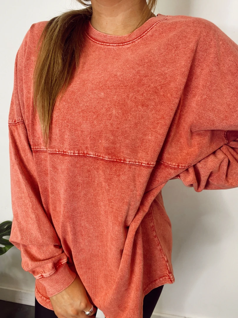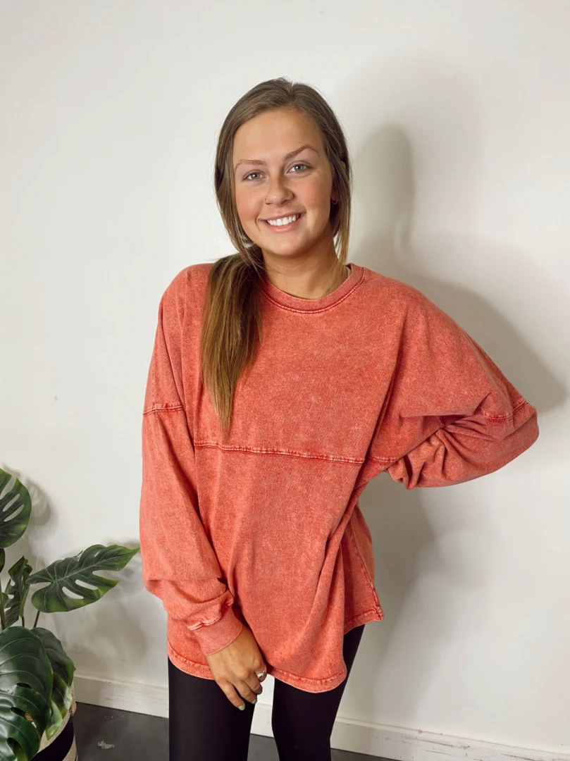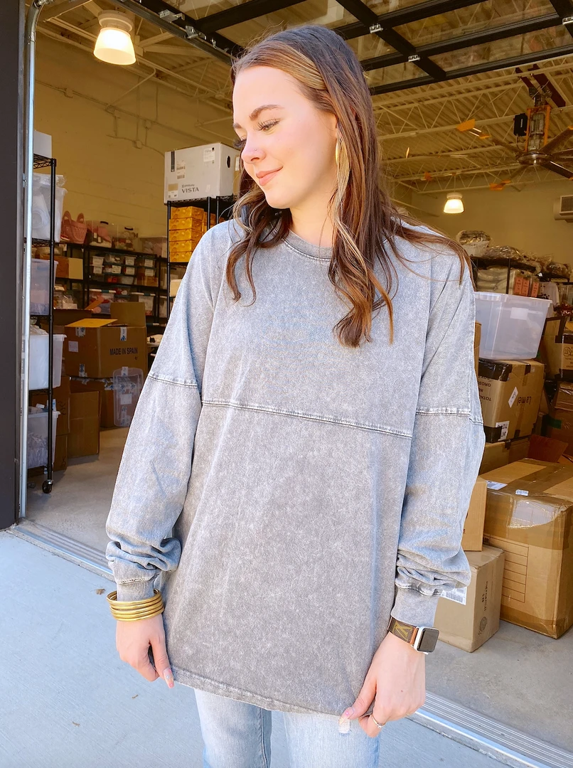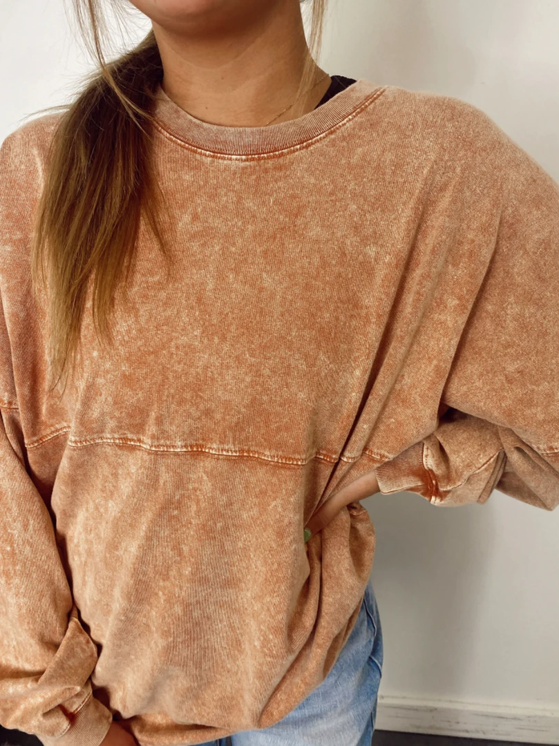 Fantastic Fawn Tops Stormi Mineral Wash Sweatshirt – Women’s Long Sleeve Casual Top