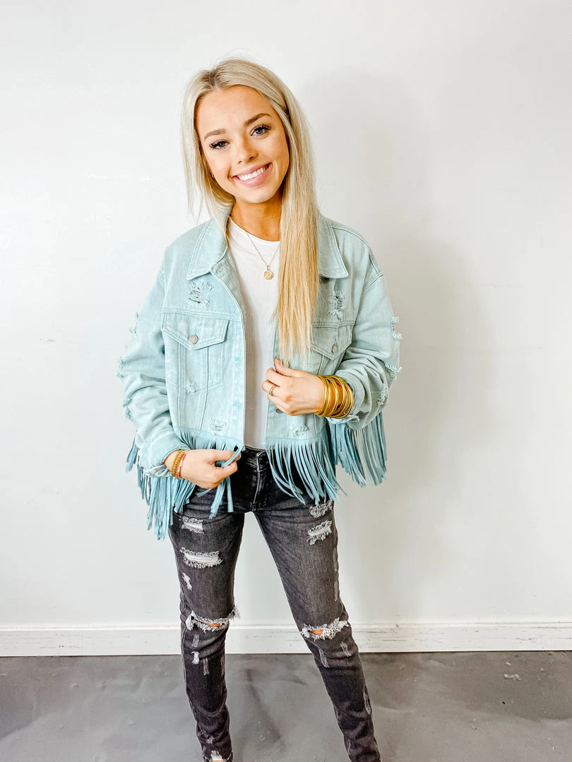 - Add the Fantastic Fawn West Coast Fringe Denim Jacket to your cart today and experience the perfect blend of style and comfort. Available in multiple sizes to fit every body type.