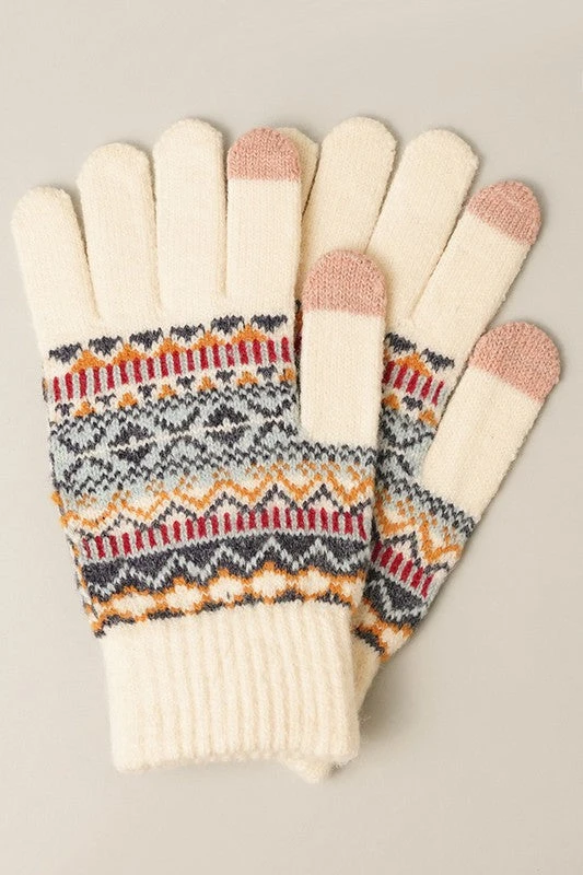 Fashion City Allie Aztec Soft Knit Gloves – Stylish Winter Handwear for Women