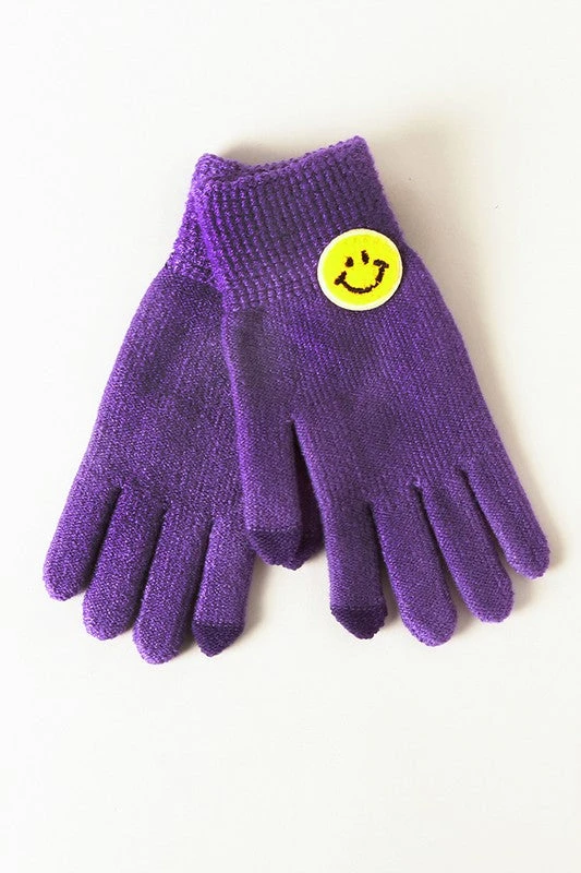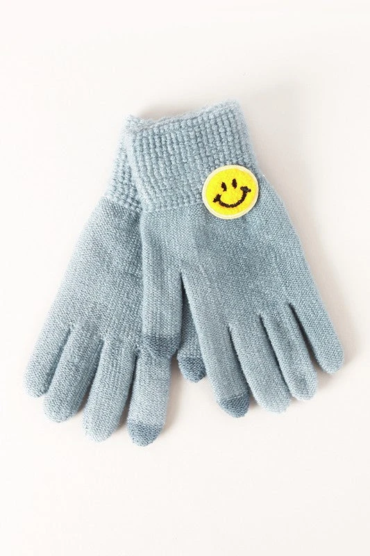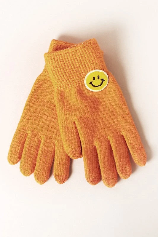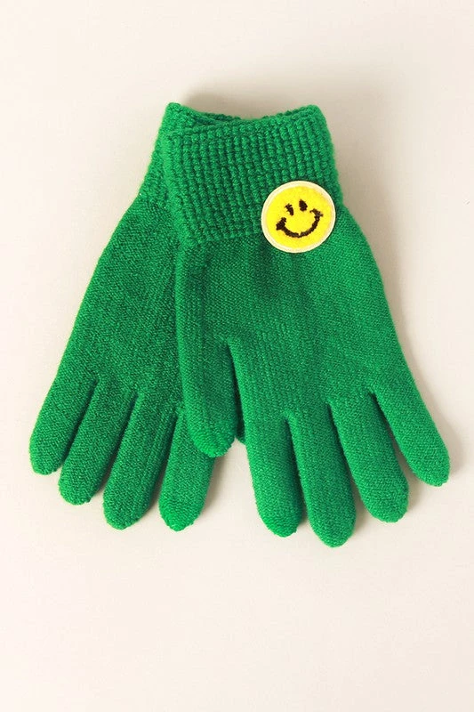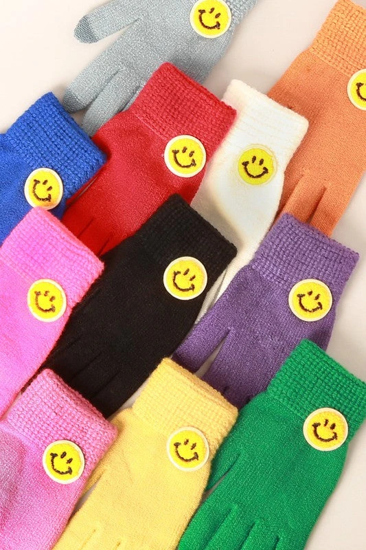 - Featuring a trendy smiley patch design, these gloves add a fun and fashionable touch to your winter wardrobe. Perfect for casual outings or daily commutes.