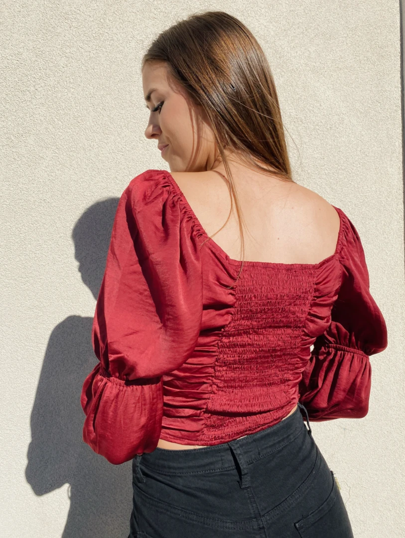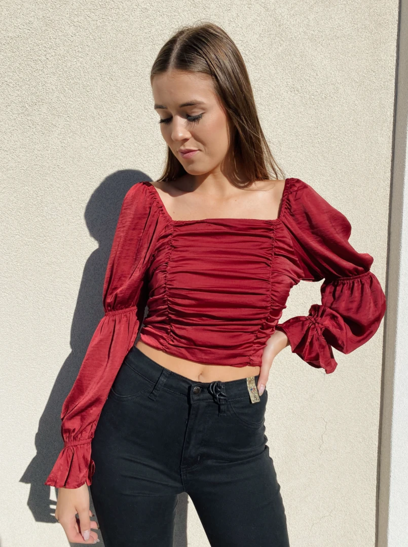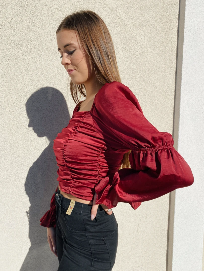 Glam Tops Mabry Ruched Long Sleeve Blouse – Elegant Women’s Tops