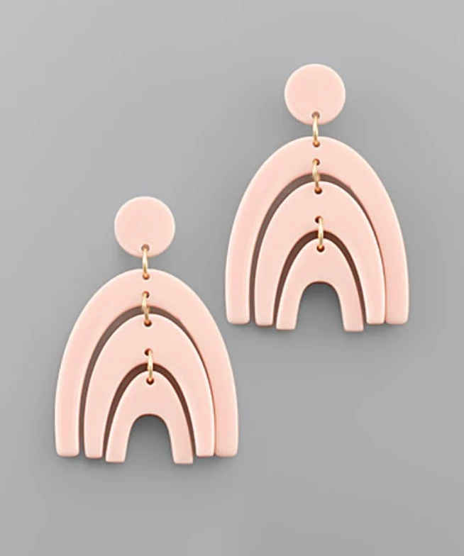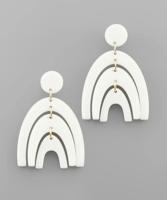 - Elevate your style with the Golden Stella 3-Tier Acrylic Arch Earrings. These elegant earrings feature a unique 3-tier design, crafted from high-quality acrylic for a lightweight and comfortable fit.