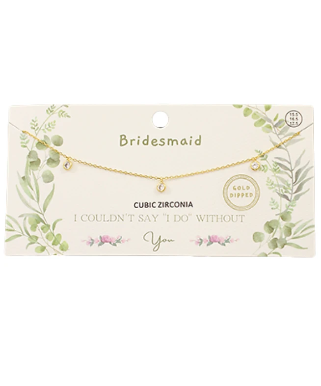 - Elevate your bridesmaid look with the Golden Stella Bridesmaid CZ Charm Necklace. This elegant necklace features a delicate chain adorned with a sparkling CZ charm, perfect for weddings and formal events.