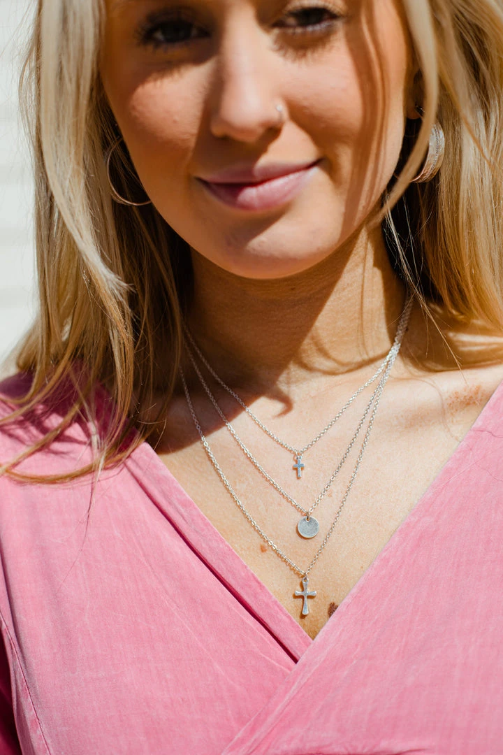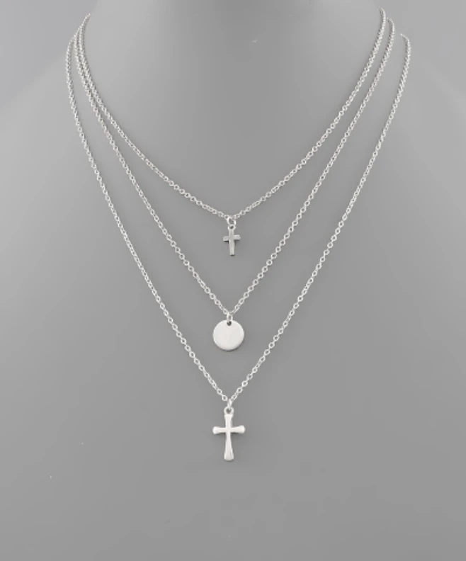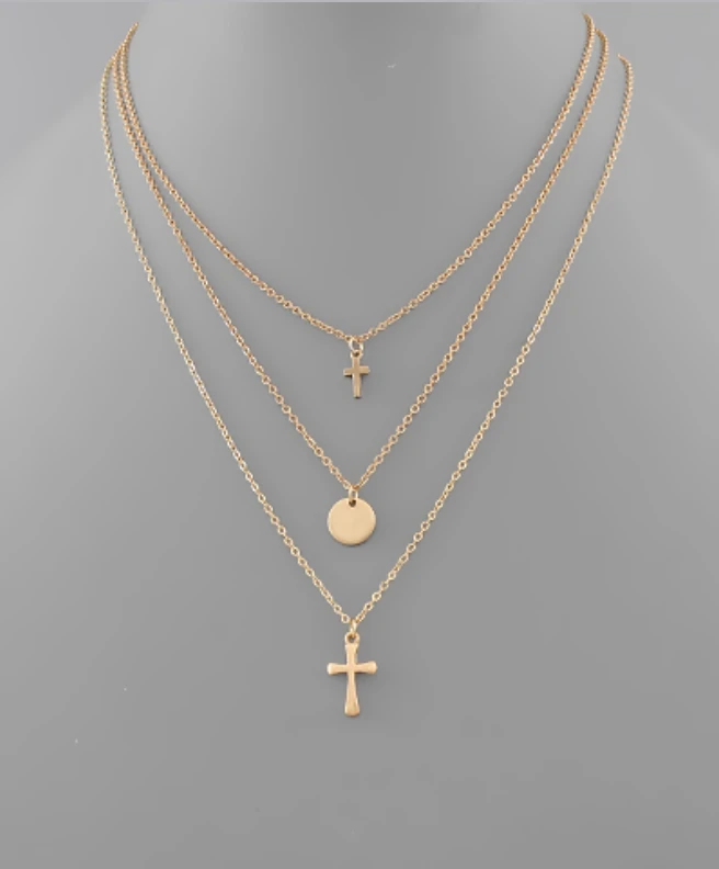 Golden Stella Cross & Disc Layer Necklace – Elegant Layered Jewelry for Women