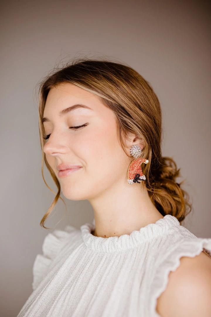 - Elevate your holiday style with these stunning Golden Stella Crystal Santa Hat Earrings. Featuring sparkling crystals and a festive Santa hat design, these earrings are perfect for Christmas parties, family gatherings, or adding a touch of holiday cheer to your everyday look.