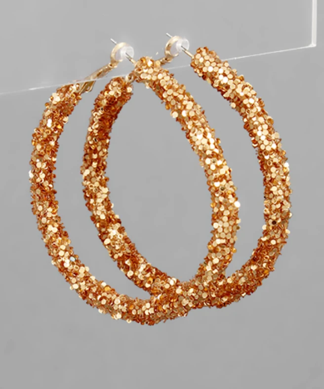 - Crafted with high-quality materials, these hoops feature a sparkling glitter finish that catches the light beautifully, making them perfect for both casual and formal occasions.
