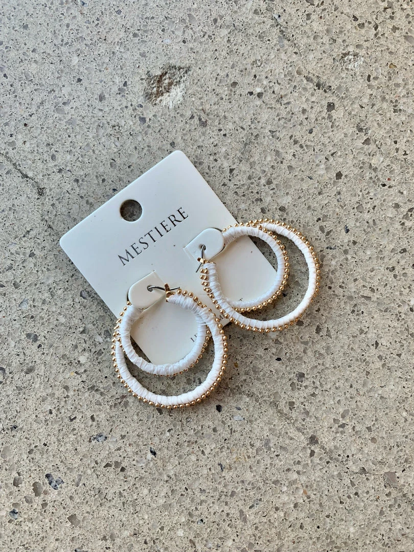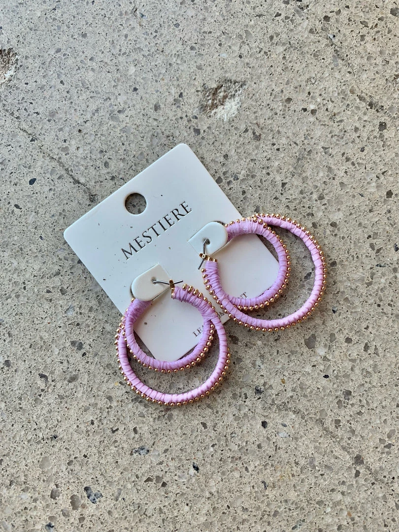 Looking for the perfect earrings this Spring? Look no further, the Studded Double Hoop Earring is perfect for you! Featuring beautiful selection of pastel hues and a gold studded rim, these earrings are sure to make any outfit.Â