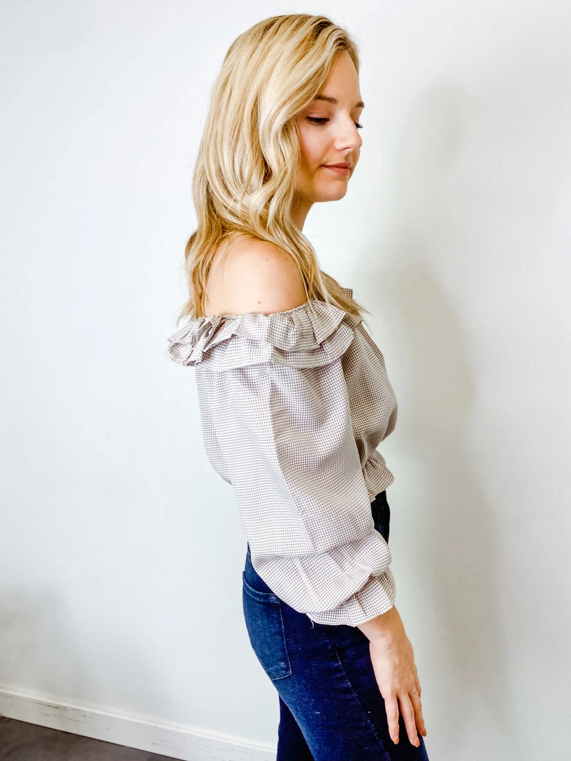 HYFVE Women’s Gingham Off The Shoulder Long Sleeve Top – Stylish & Comfortable