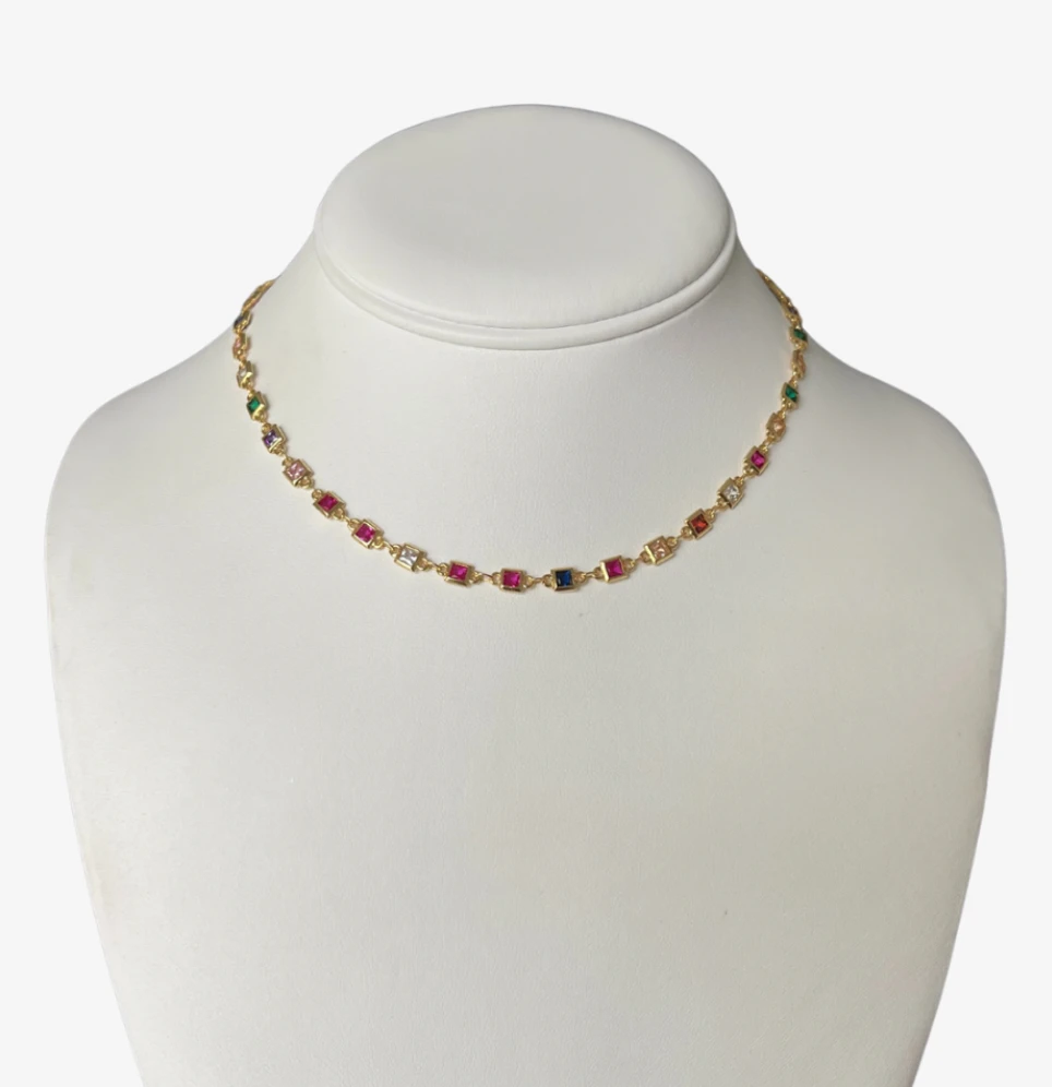 - Elevate your style with the Jewels By Jessica JBJ Ruby Rainbow Chain Necklace. Featuring a stunning array of vibrant gemstones, this necklace is perfect for adding a pop of color to any outfit.