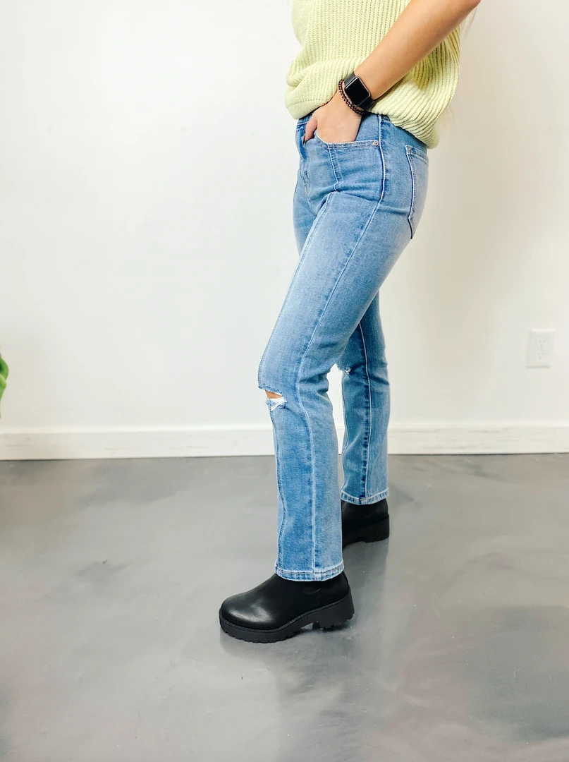 - Elevate your wardrobe with the KanCan Bailey Straight Leg Jeans. These high-waisted denim pants offer a flattering fit and timeless style, making them a versatile addition to any outfit.