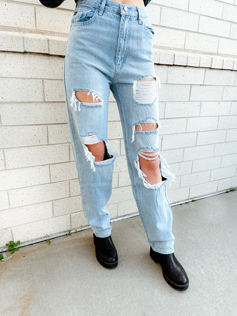 - Step back in style with the KanCan Leigh 90’s Boyfriend Jeans. These high-waisted, distressed denim pants offer a relaxed, boyfriend fit that’s both trendy and comfortable.
