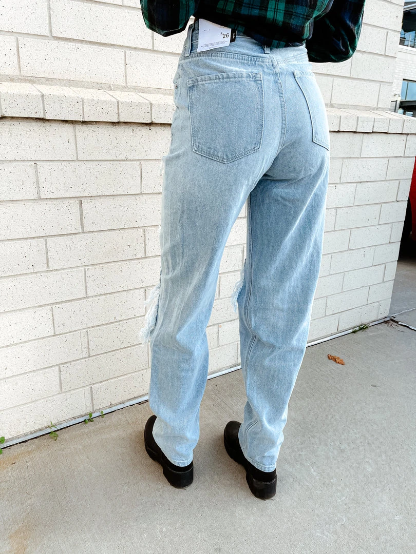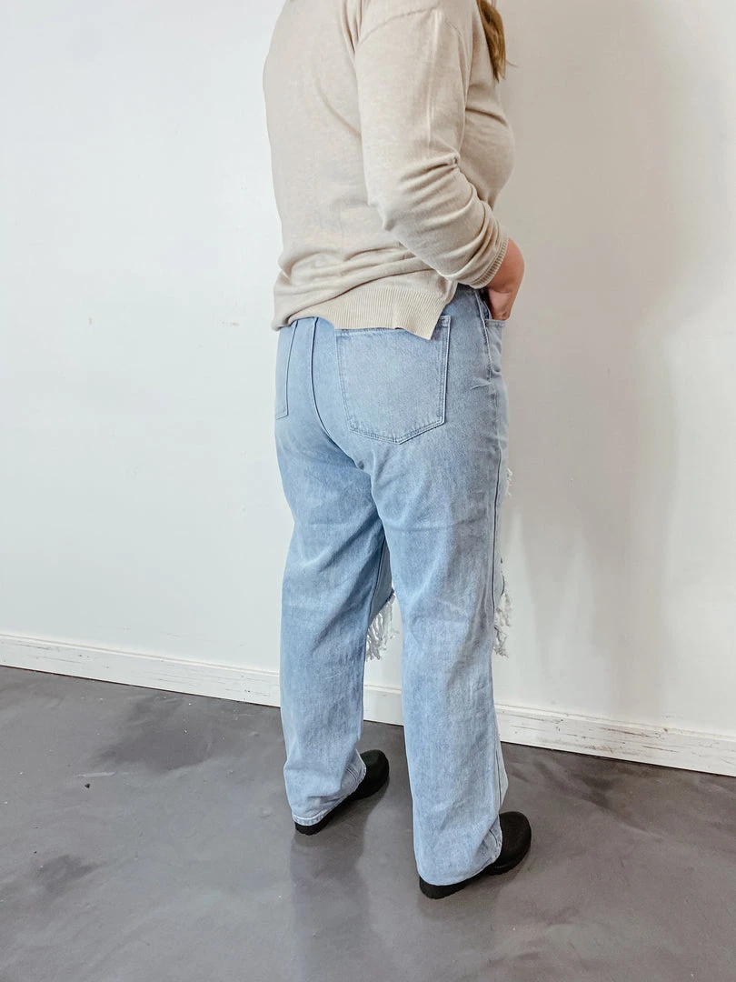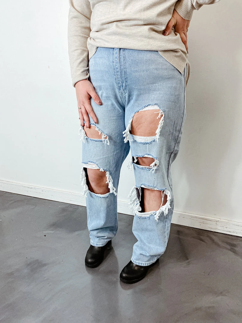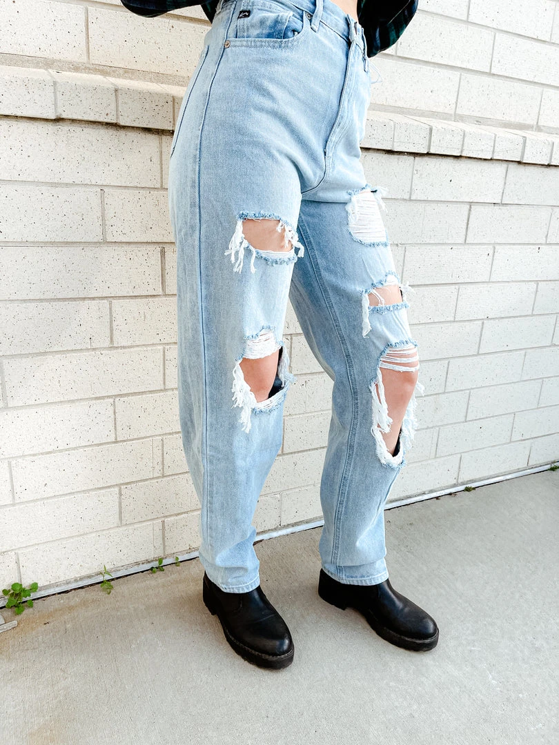 KanCan Bottoms Leigh 90’s Boyfriend Jeans – Plus Size High-Waisted Distressed Denim Pants
