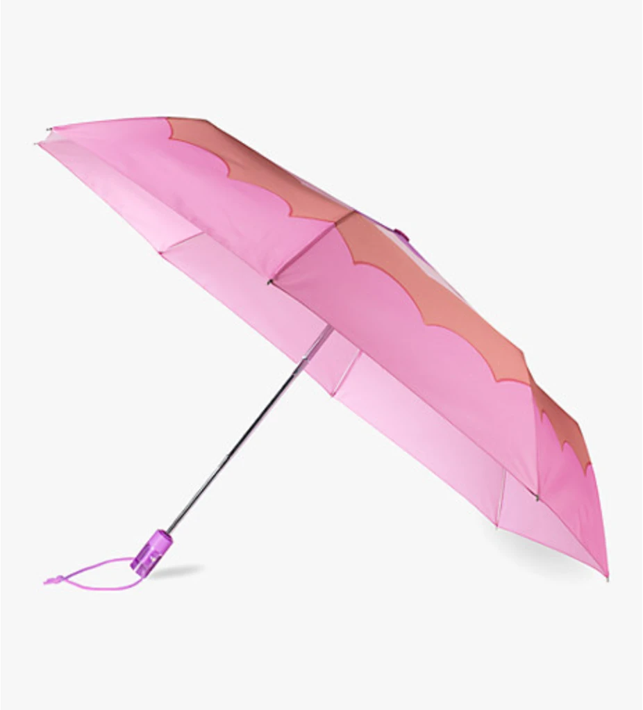 - Stay stylish in any weather with the Kate Spade Scallop Travel Umbrella. Featuring a chic scallop design, this umbrella is both functional and fashionable.