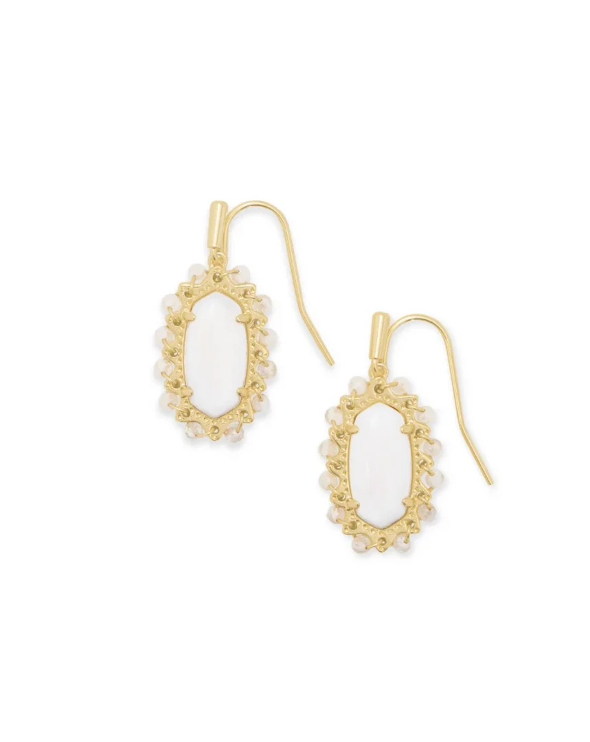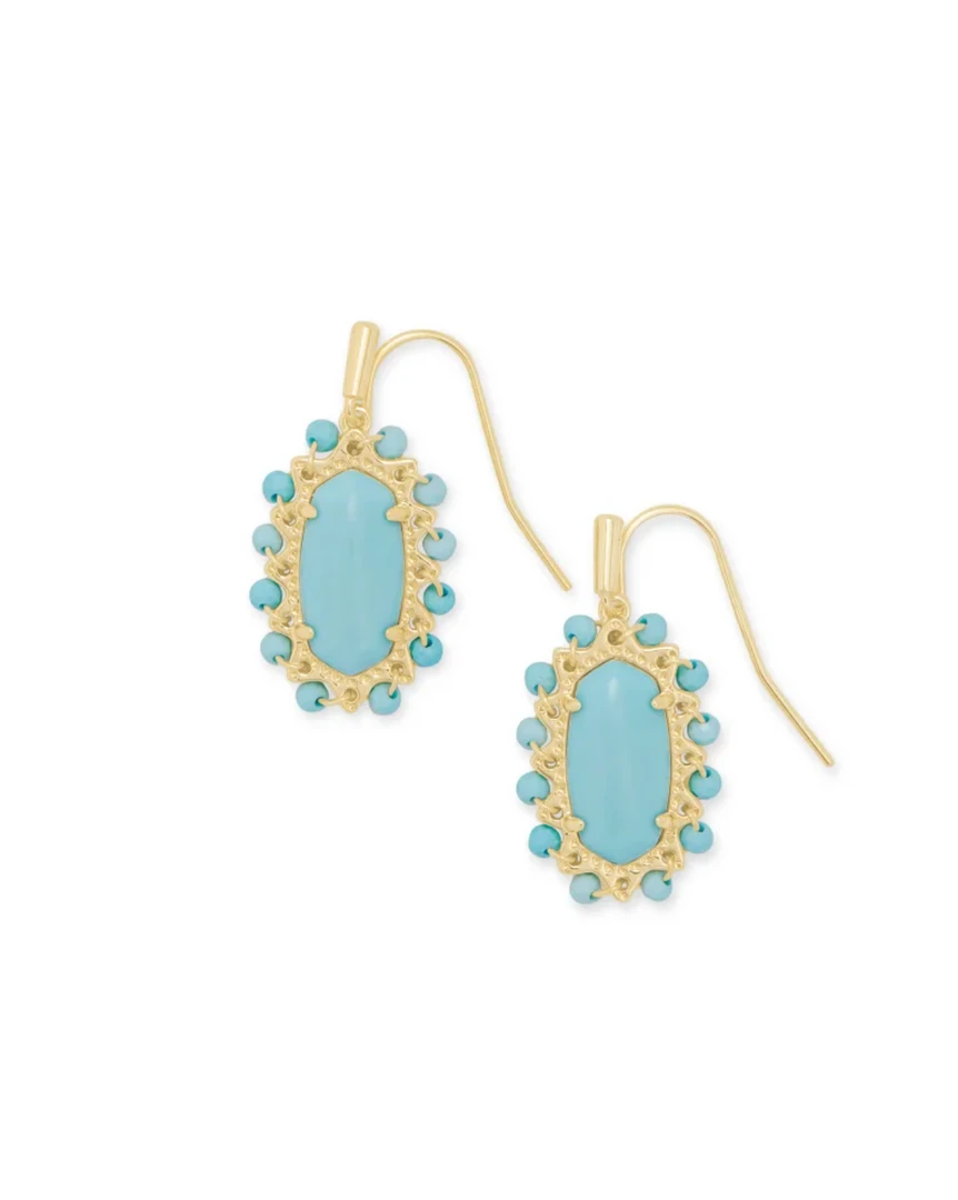 - Elevate your style with the Kendra Scott Beaded Lee Earrings. These elegant gold-tone drop earrings feature intricate beaded detailing, making them a versatile accessory for any occasion.