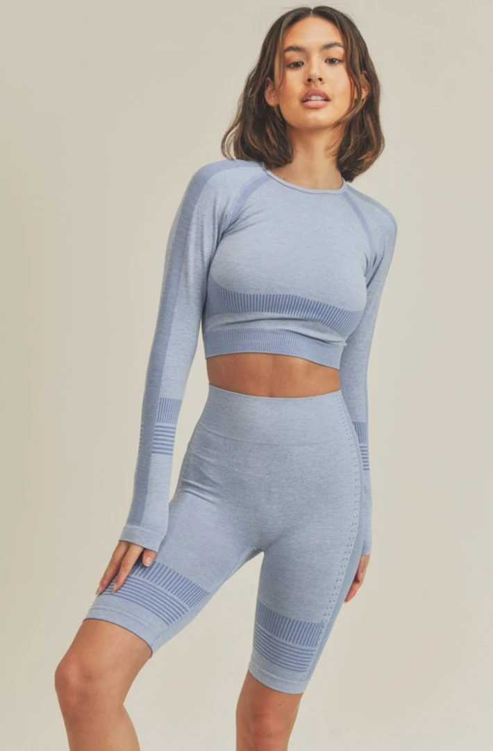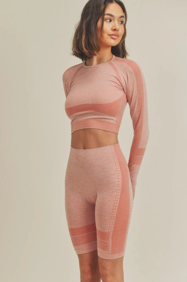 The Flex biker shorts are a stretchy, seamless, moisture-wicking fabric that is perfect for working out! These biker shorts feature a high rise waist and a super flattering fit. Pair the Flex biker shorts with the Flex Seamless Crop Top!
