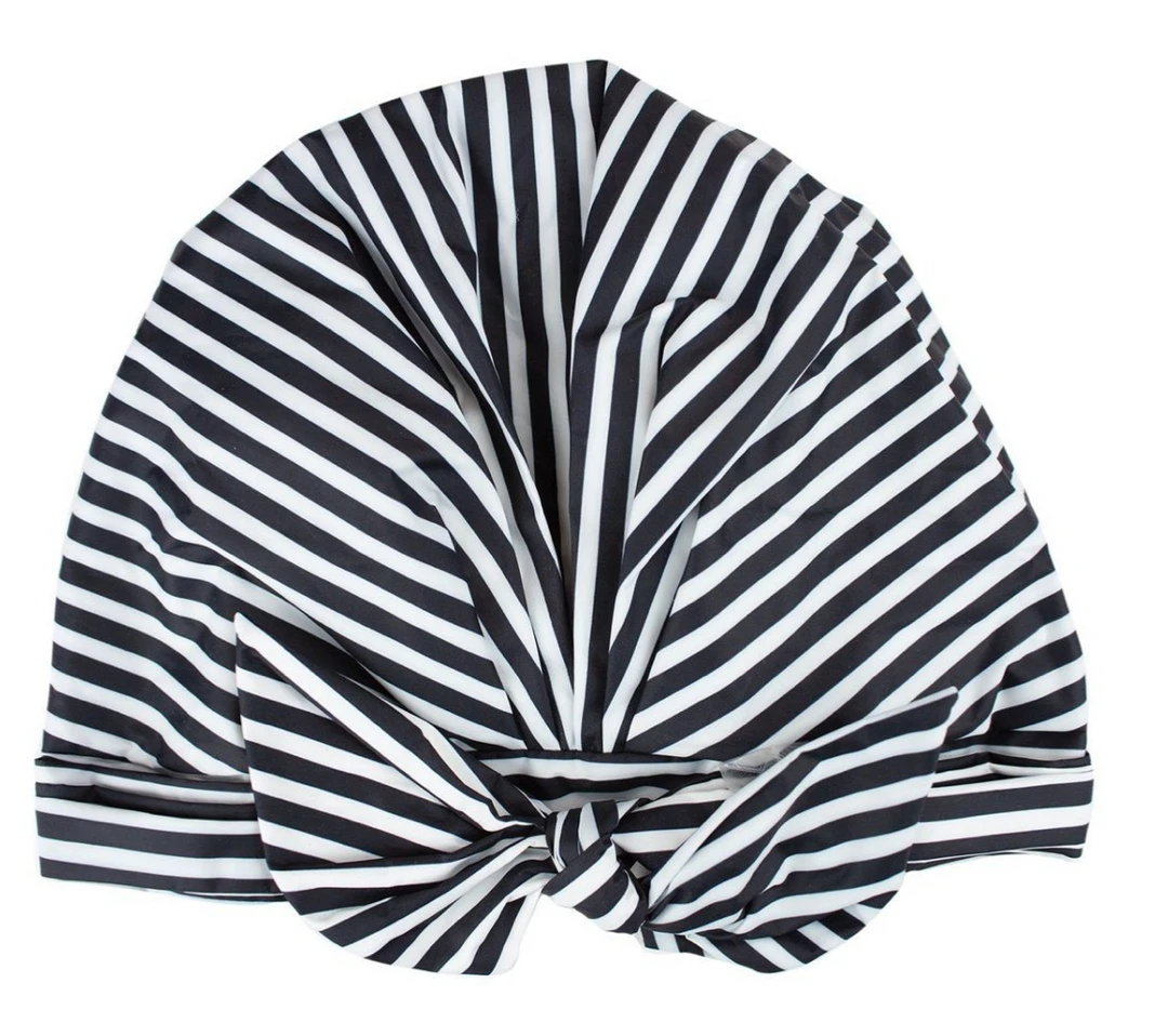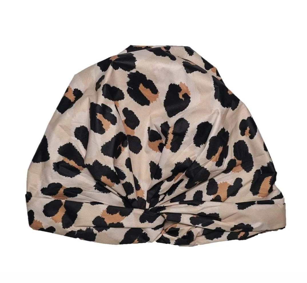 The Kitsch Patterned Shower Cap is perfectly waterproof and it features a chic turban design, elastic at the back, and a no-slip silicone grip around the inside.
