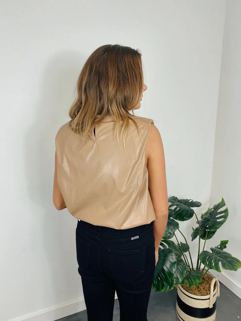 - Crafted with high-quality leather and a sleeveless design, this top offers a perfect blend of comfort and sophistication for any occasion.