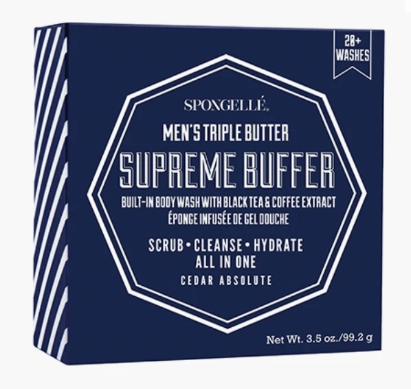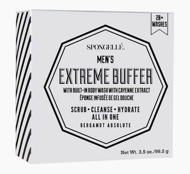 - The Spongellé Men’s Sponge features a unique dual-layer design. The top layer gently exfoliates dead skin cells, while the inner layer creates a luxurious lather for a deep, refreshing clean.