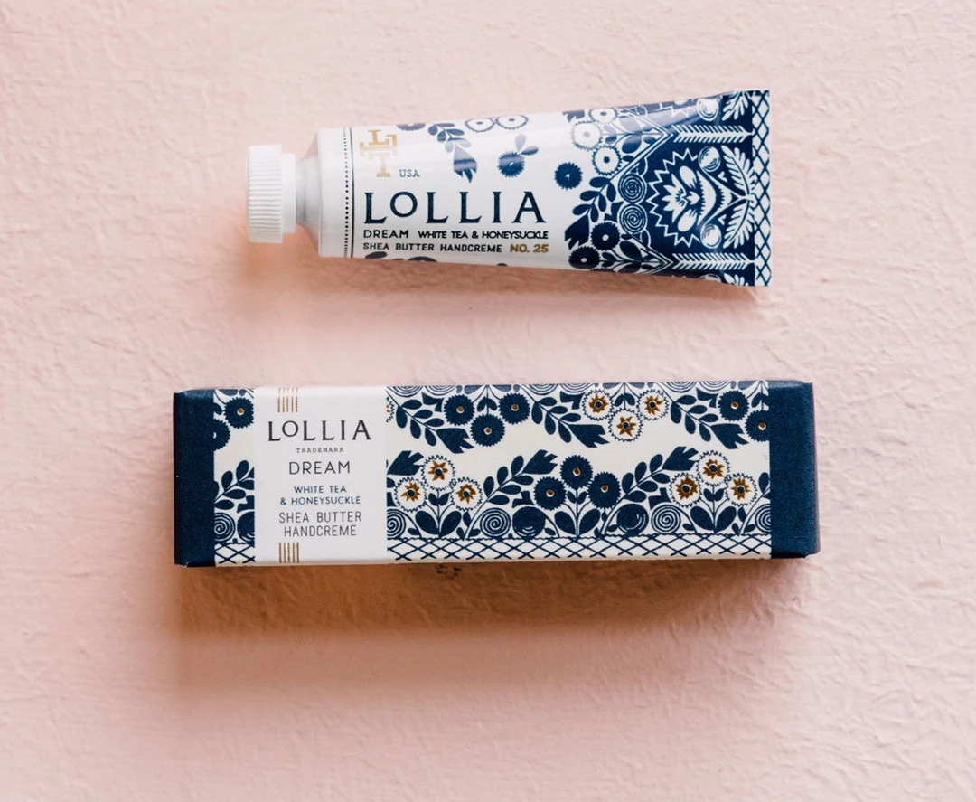 - Indulge in the luxurious Lollia Petite Treat Handcreme, designed to deeply moisturize and nourish your hands. Perfect for daily use or as a thoughtful gift.